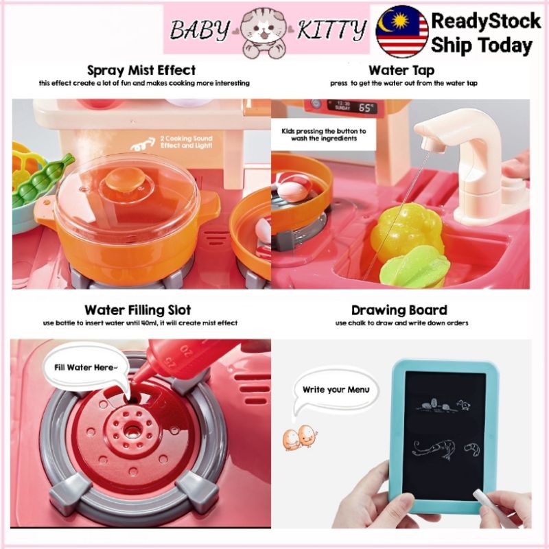 NewArrival ⭐Pretend Kitchen Play Set Spraying Mist Steam Cooking Scene Masak Mask