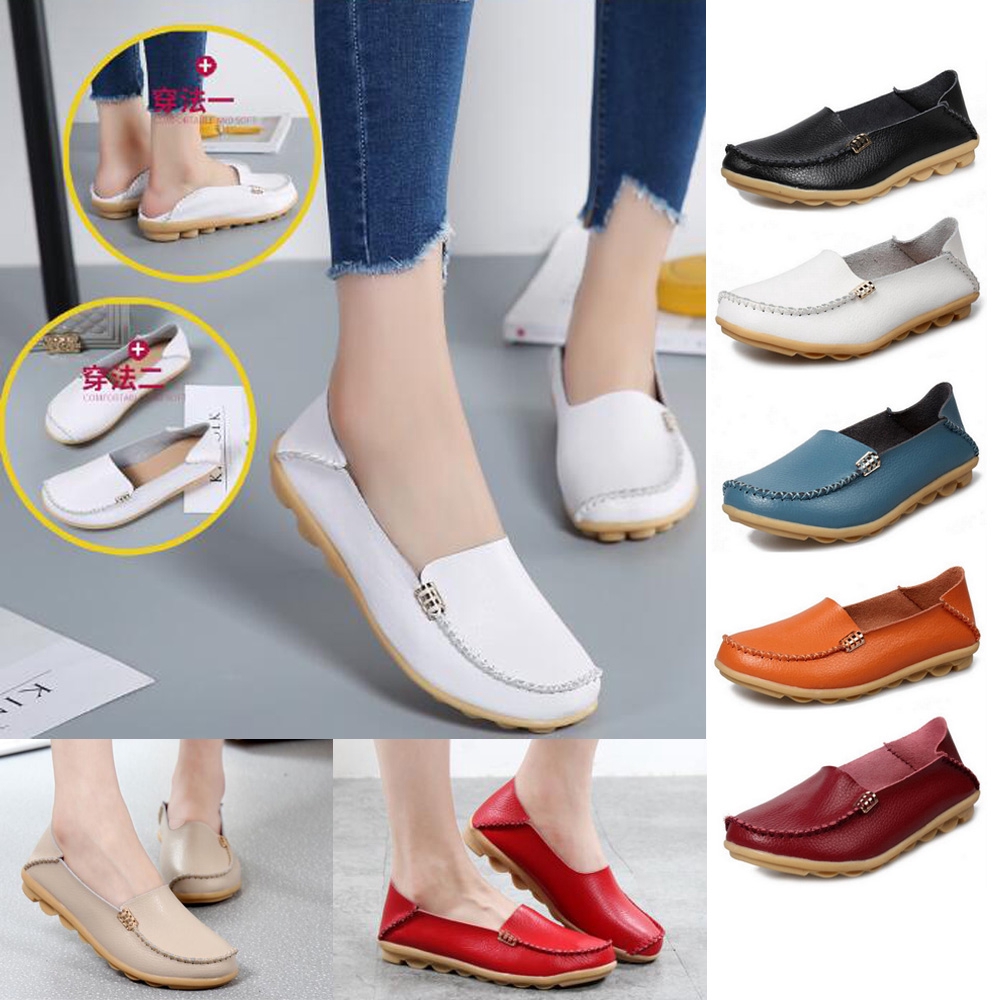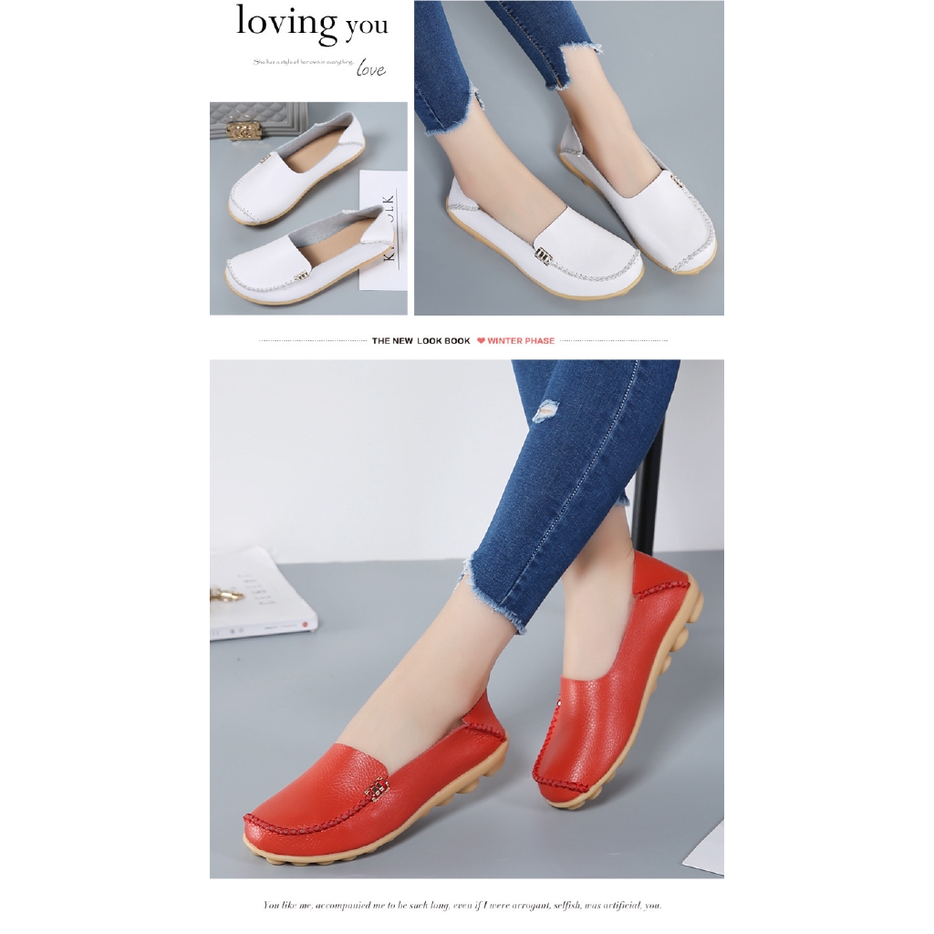 {WoNew 35-44} Women flat shoes woman large size lady leather shoes white nurse kasut wanita