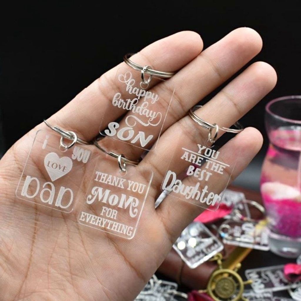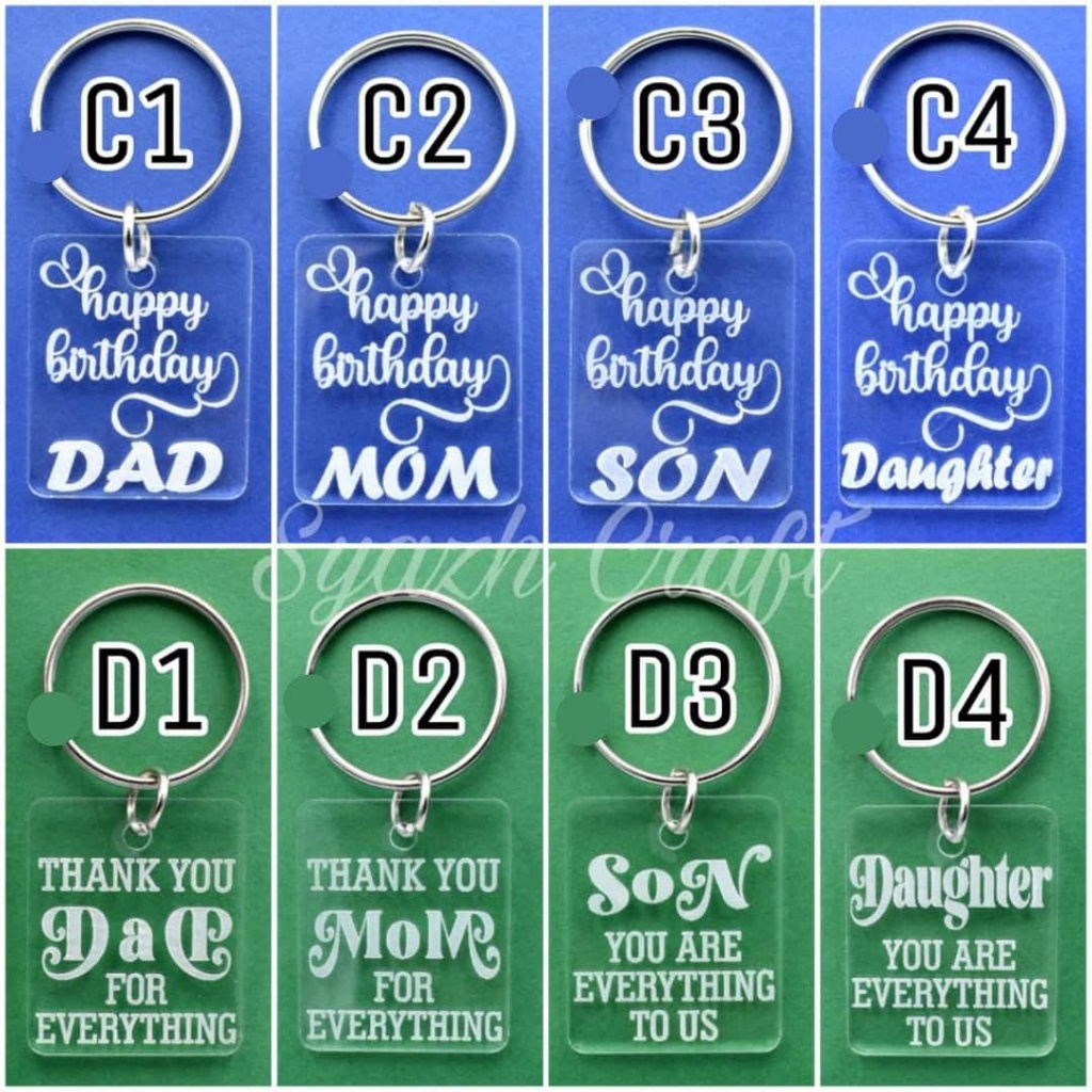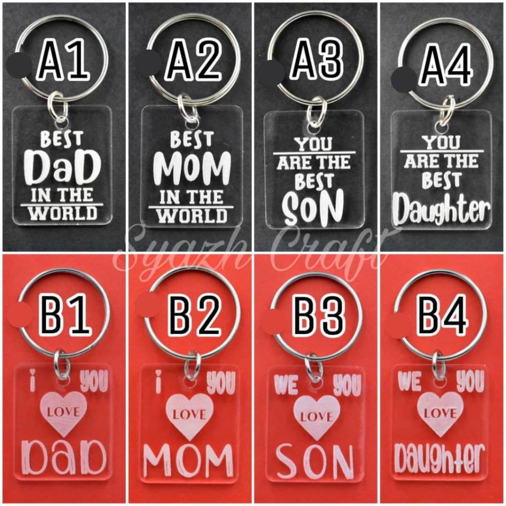 (RSD1) Engrave Keychain via Ready Stock Keychain Father Keychain Mother Gift Cute Keychain Family