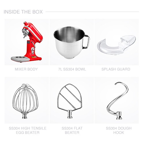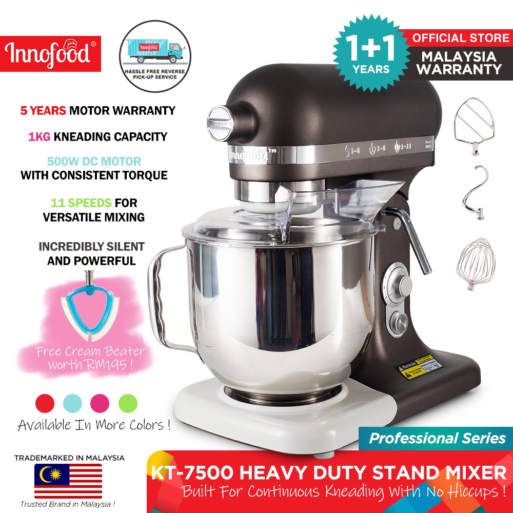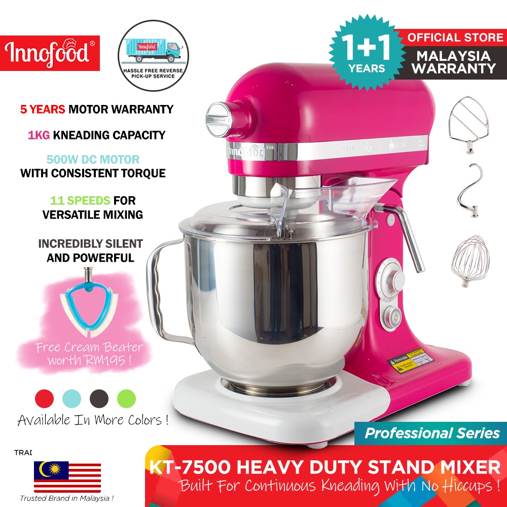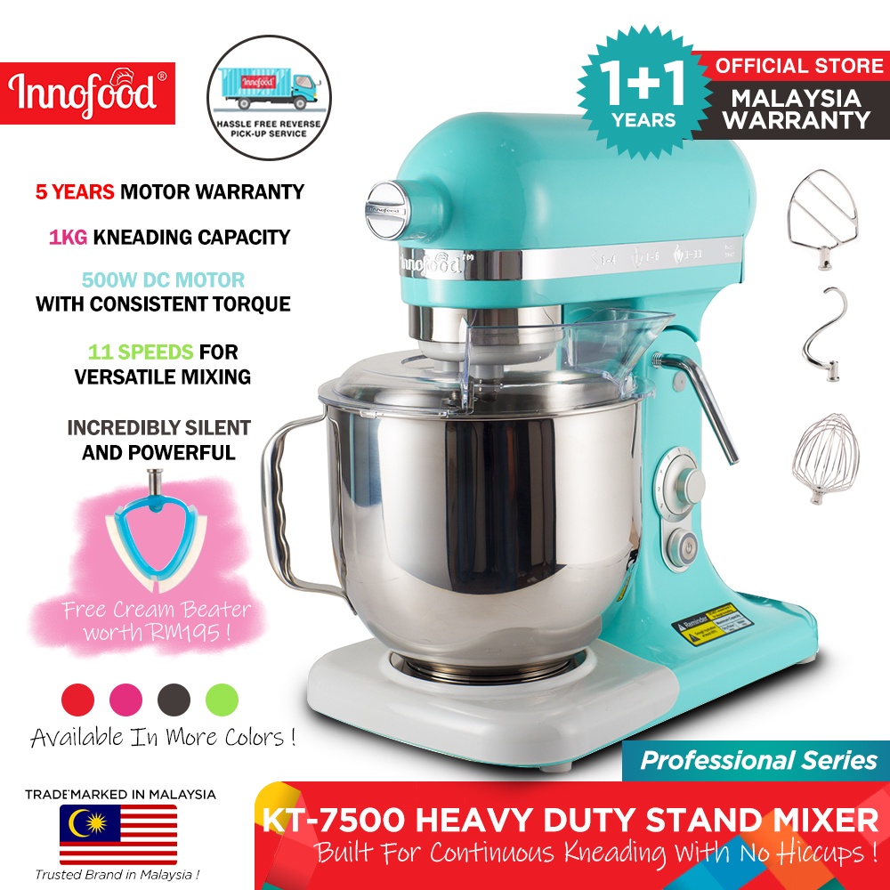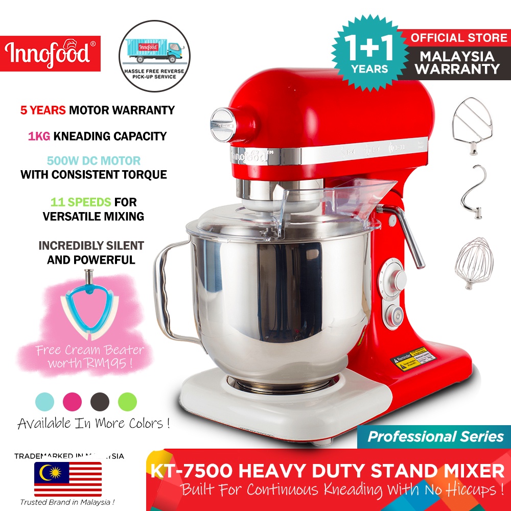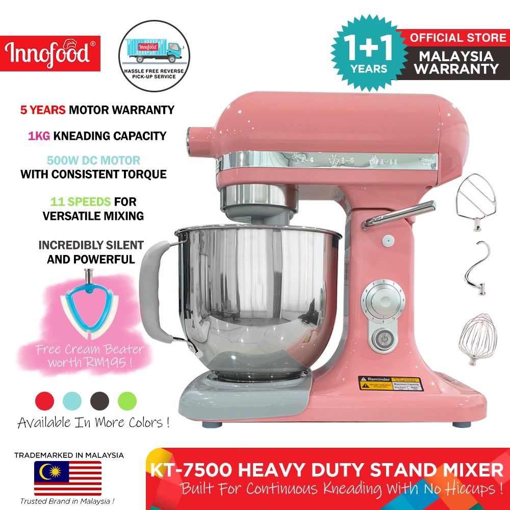 Innofood Heavy Duty Professional Silent Stand Mixer - Red/Matte Grey/Lime Green/Coral Pink/White/Pink/Blue (7L) KT-7500