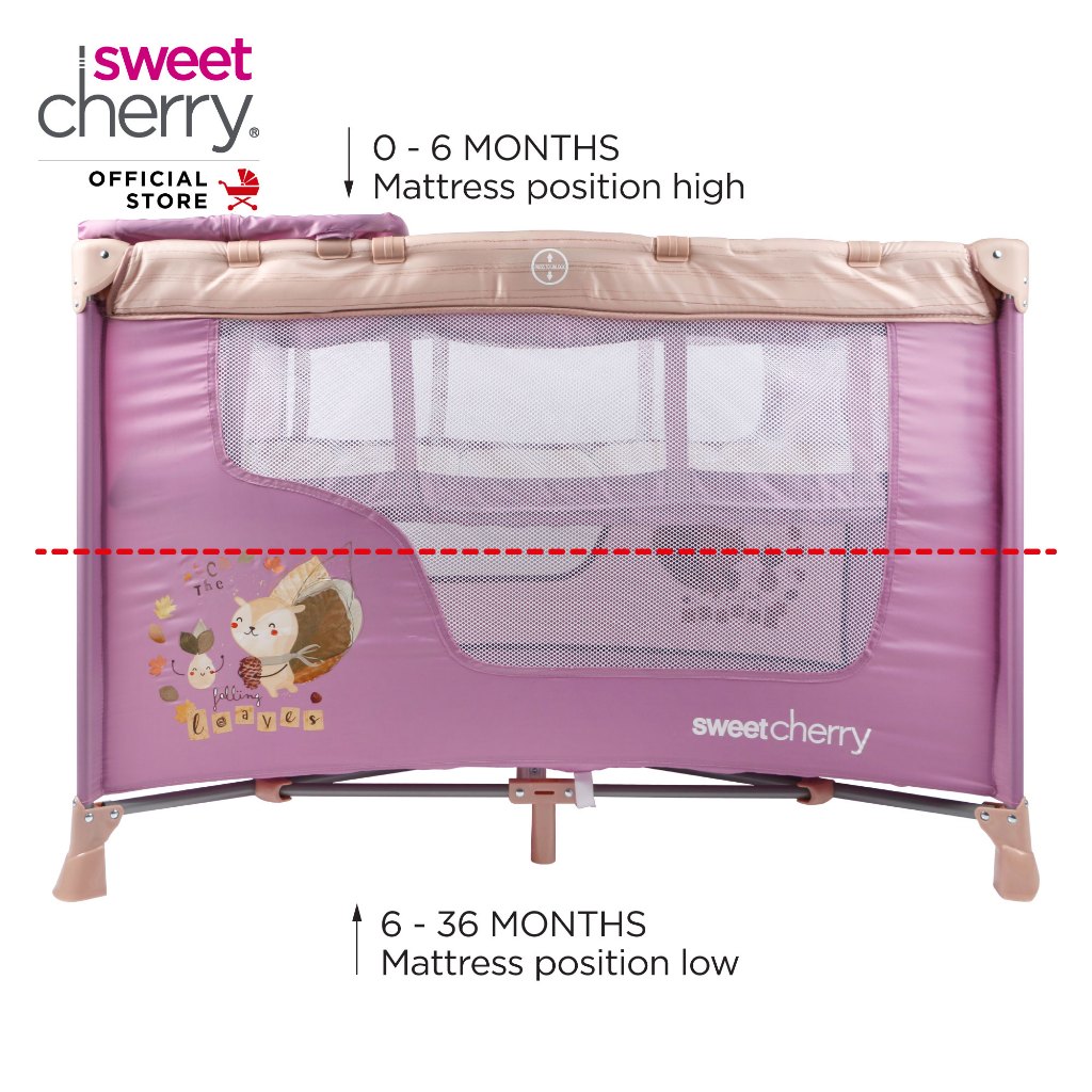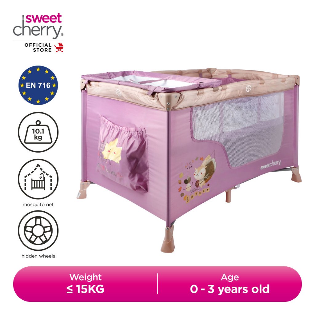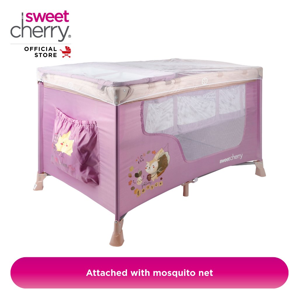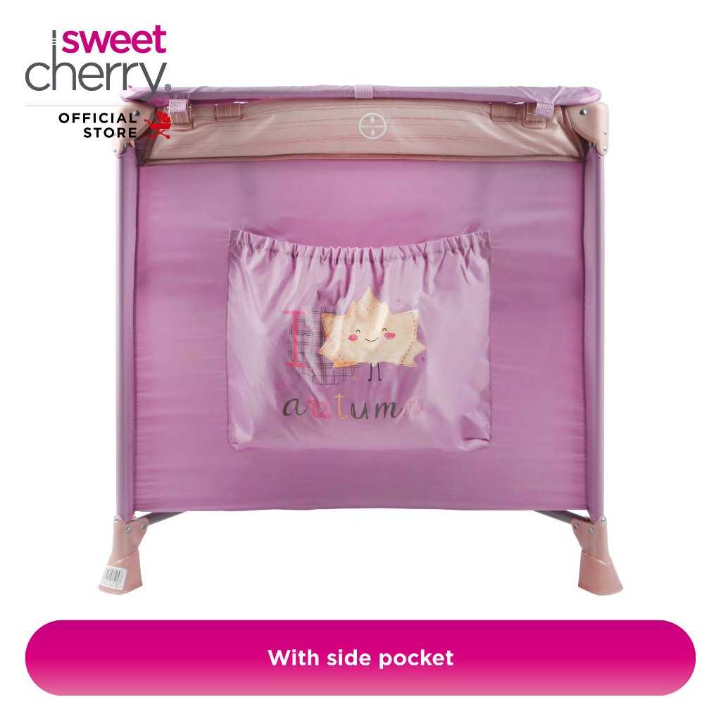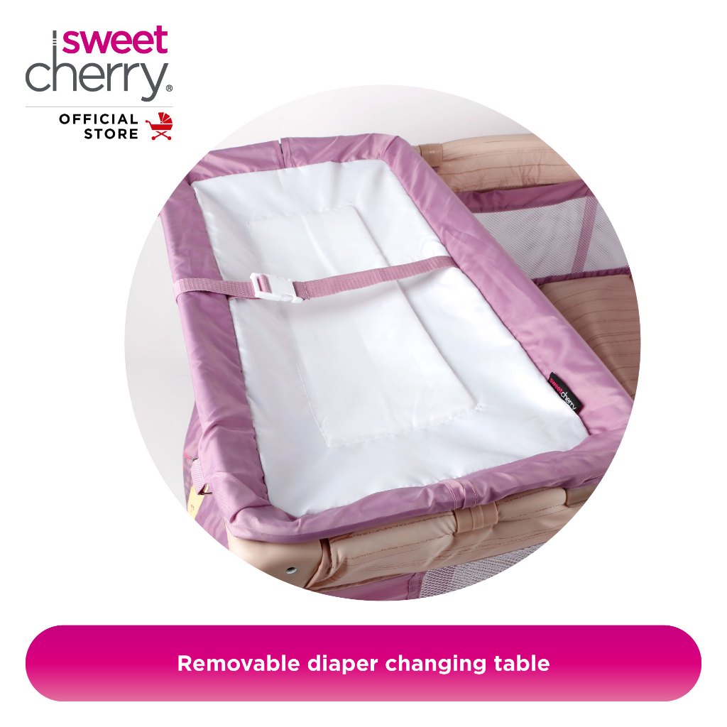 Sweet Cherry Portable Lightweight Travel Cot with Diaper Changing Table, Pocket and Mosquitoes Net Panda Playpen SC677