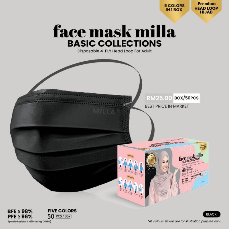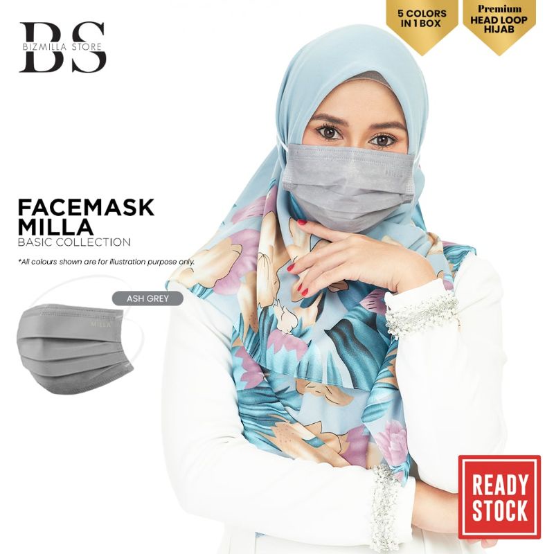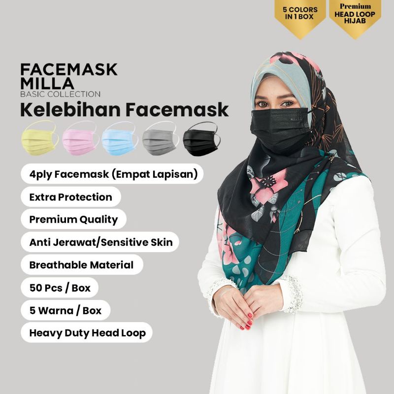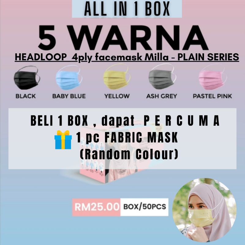 {50pcs ~ 5 colors/BOX} 4Ply FACE MASKS HEADLOOP. PLAIN SERIES 5 IN 1. MESRA HIJAB by Milla Jirin