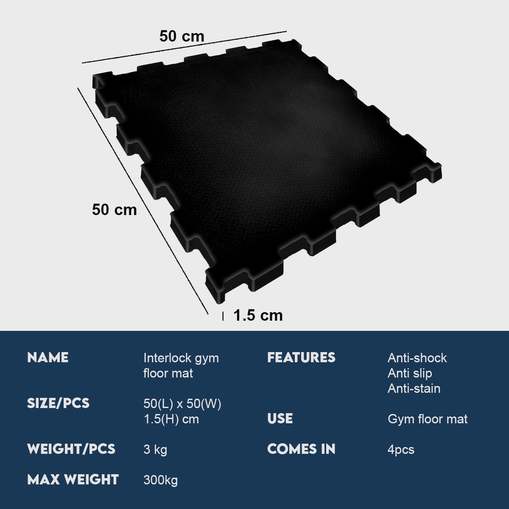Vigor Fitness Interlock Gym Mat (50cm x 50cm x 1.5cm / 4 Pcs) / Interlock Gym Mat (50cm x 50cm x 1.5cm / 4 Pcs)