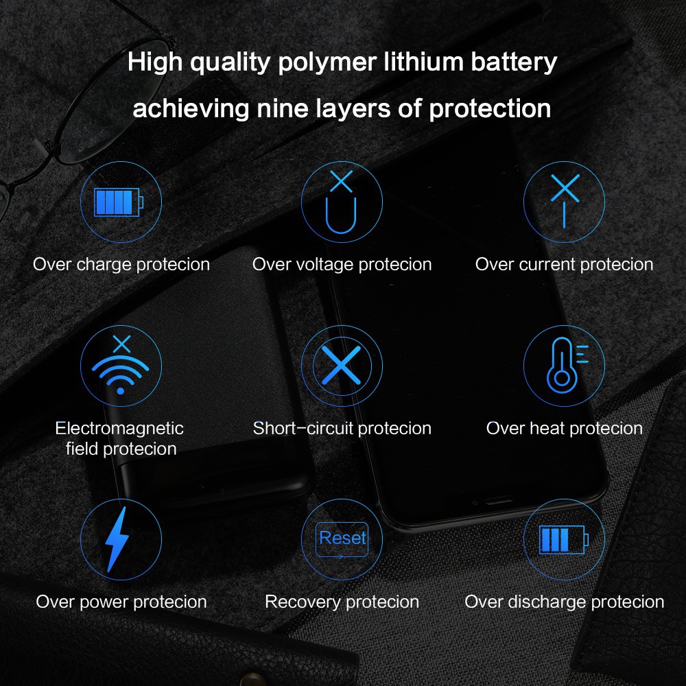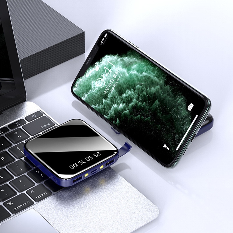 20000mAh Portable Mini PowerBank Mirror Screen Digital Display PowerBank External Battery Pack Power Bank