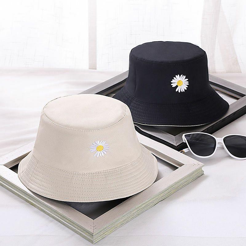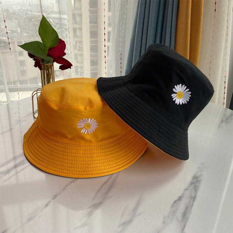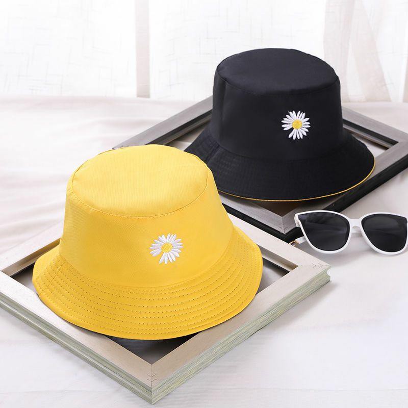 Women Bucket Fishing Hats Daisy Smile Cap Double Sided Wear Spring Lady Fisherman Beach Hat Gift Topi Pantai Wanita
