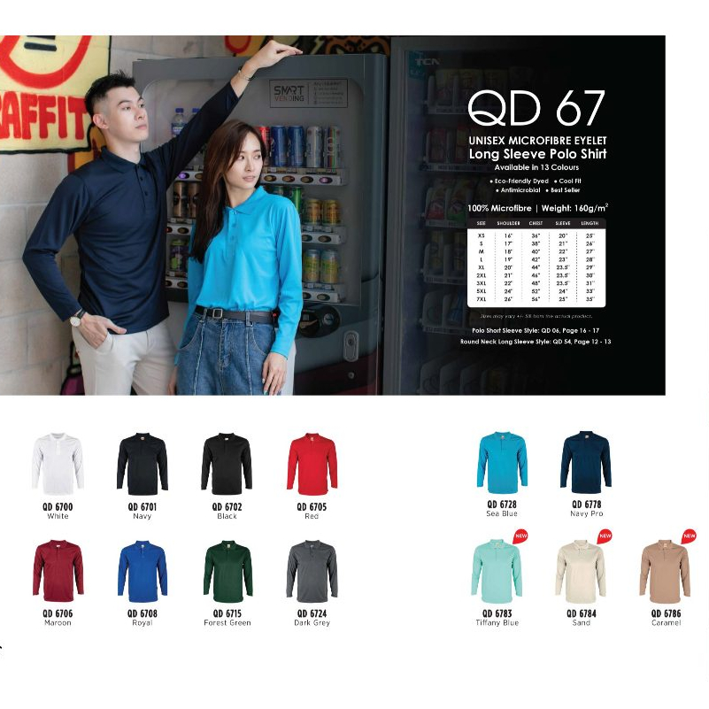 Custom PRINTING QD67 Logo+Nama Microfiber Polo Collar Long Sleeve T-shirt Jersey Print DTF Custom