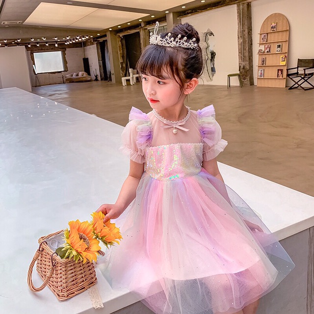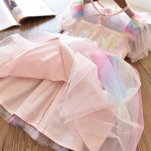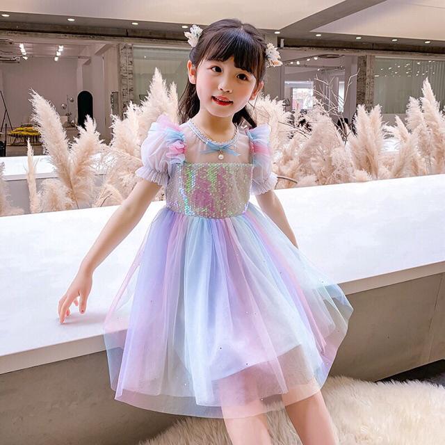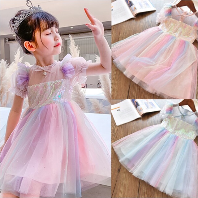 3-8years Gown Dress Raya 2020 Kids Girl Children Pink Blue Rainbow Colourful Budak Kanak-kanak AKD056