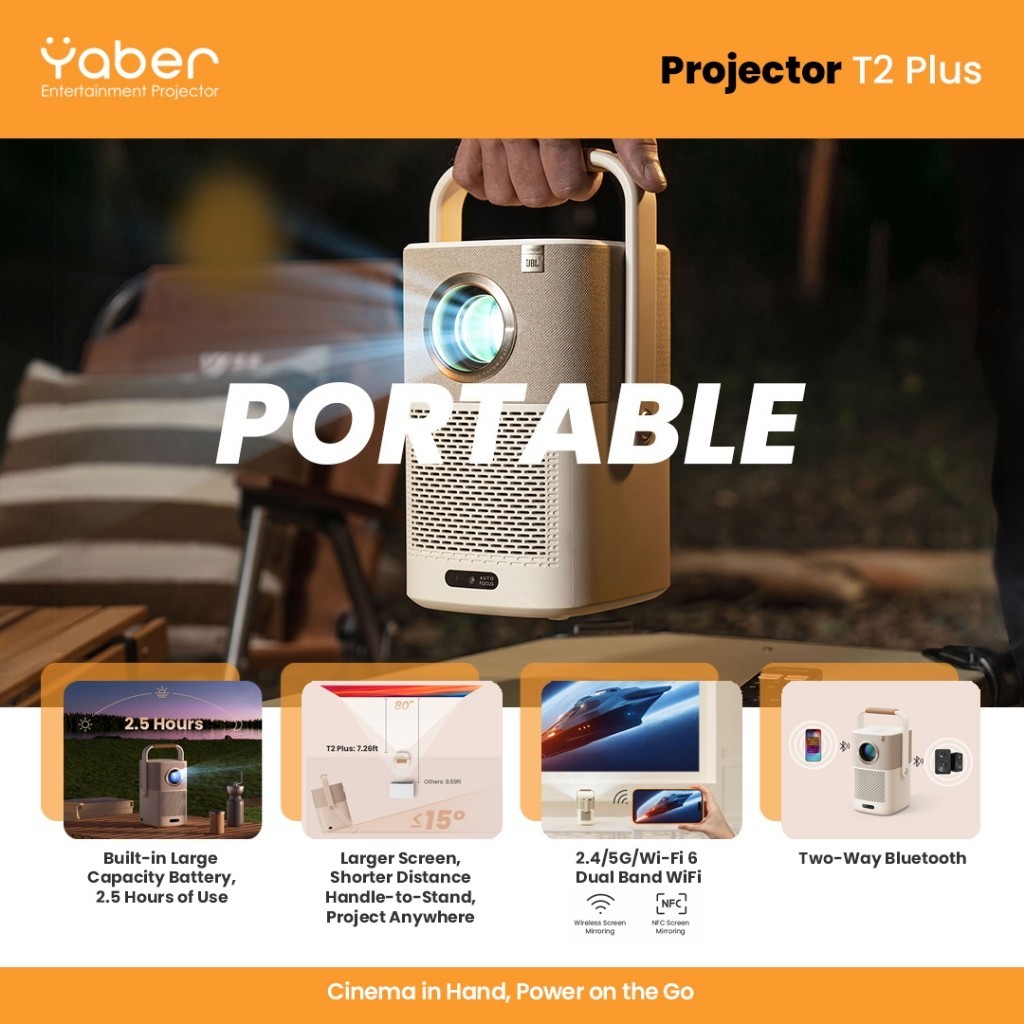 Yaber T2 Plus 1080P FHD 450 ANSI Lumens with GooYaber Outdoor Projector Home Cinema Support NFC Wifi 6 Bluetooth 5.0