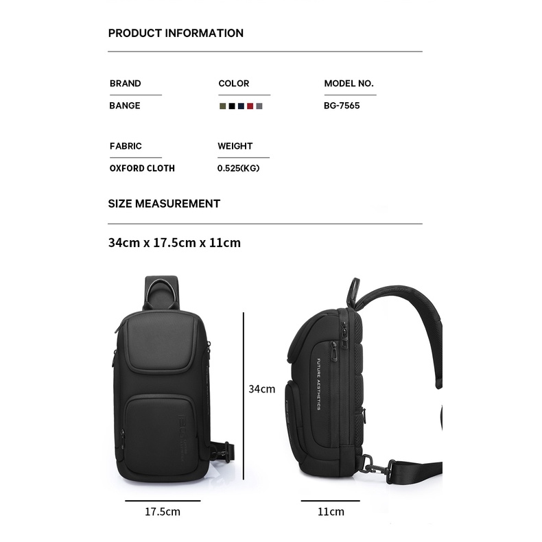 BANGE Osuko Sling Bag Multi Compartment Water-Resistant