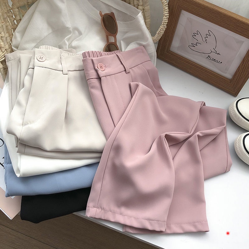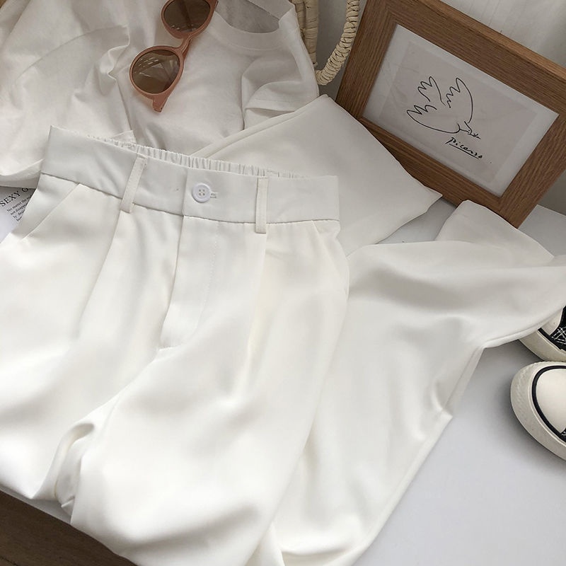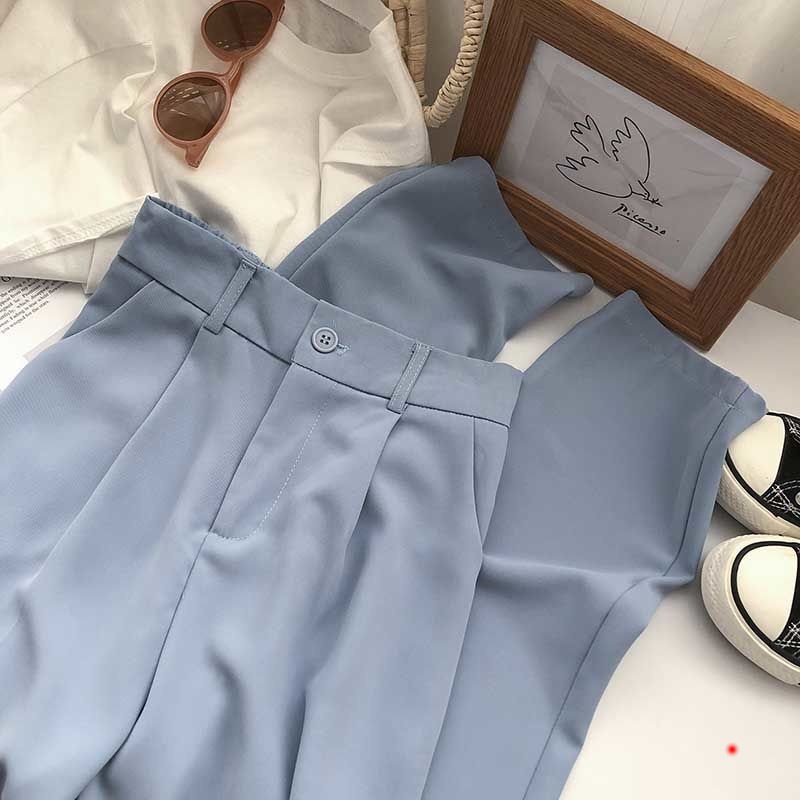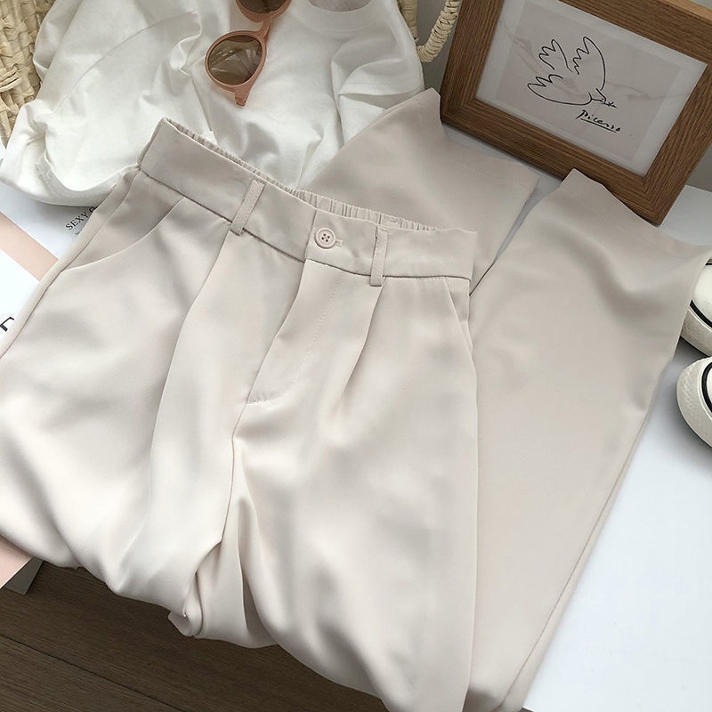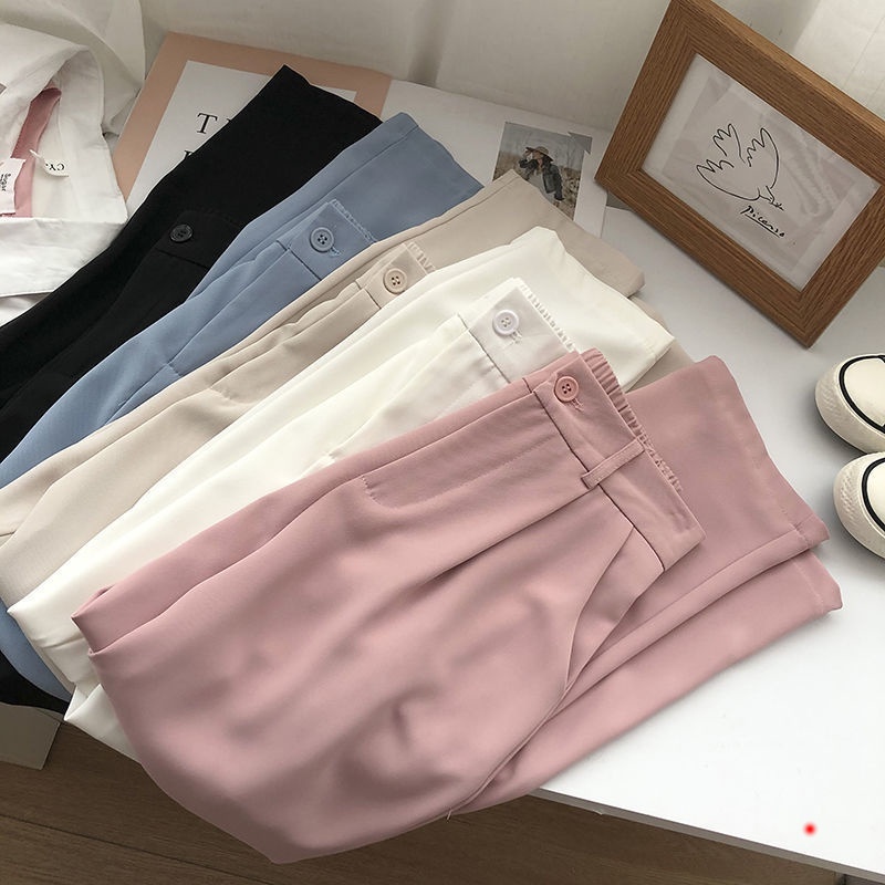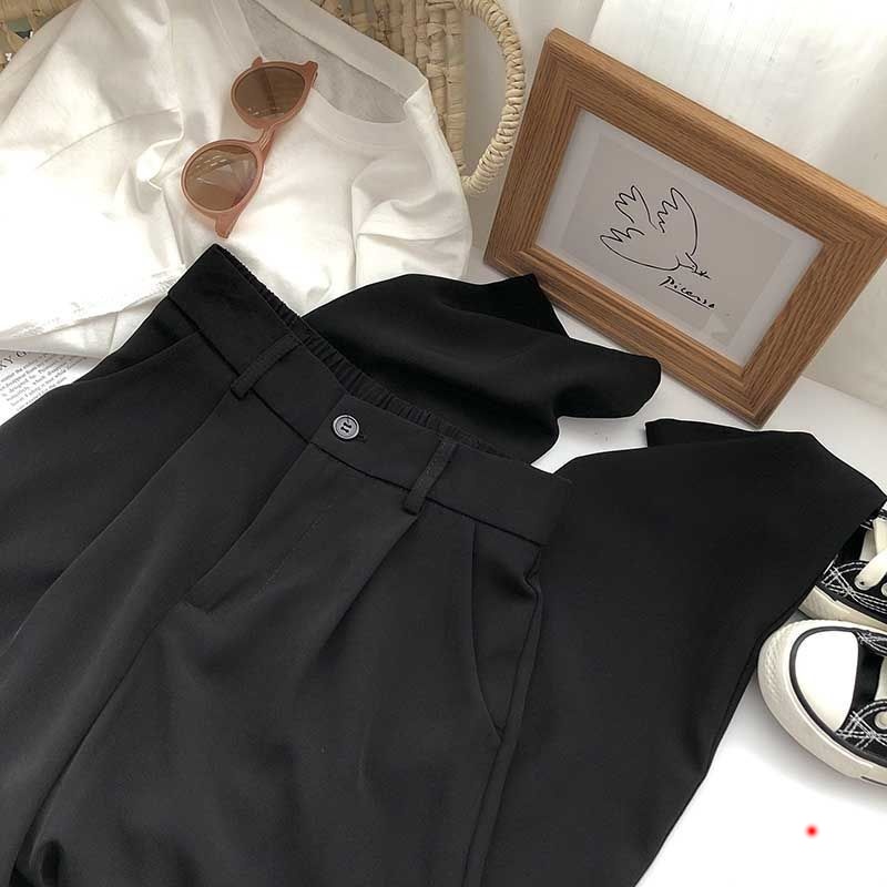 S-2XL Long Baggy Suit Pants Women Straight Cut Korean Style Casual Loose Black White Woman Wide Leg Plus Size Ladies Pants Seluar Slack Panjang Hitam Putih Slek Wanita Perempuan Murah Palazo Muslimah