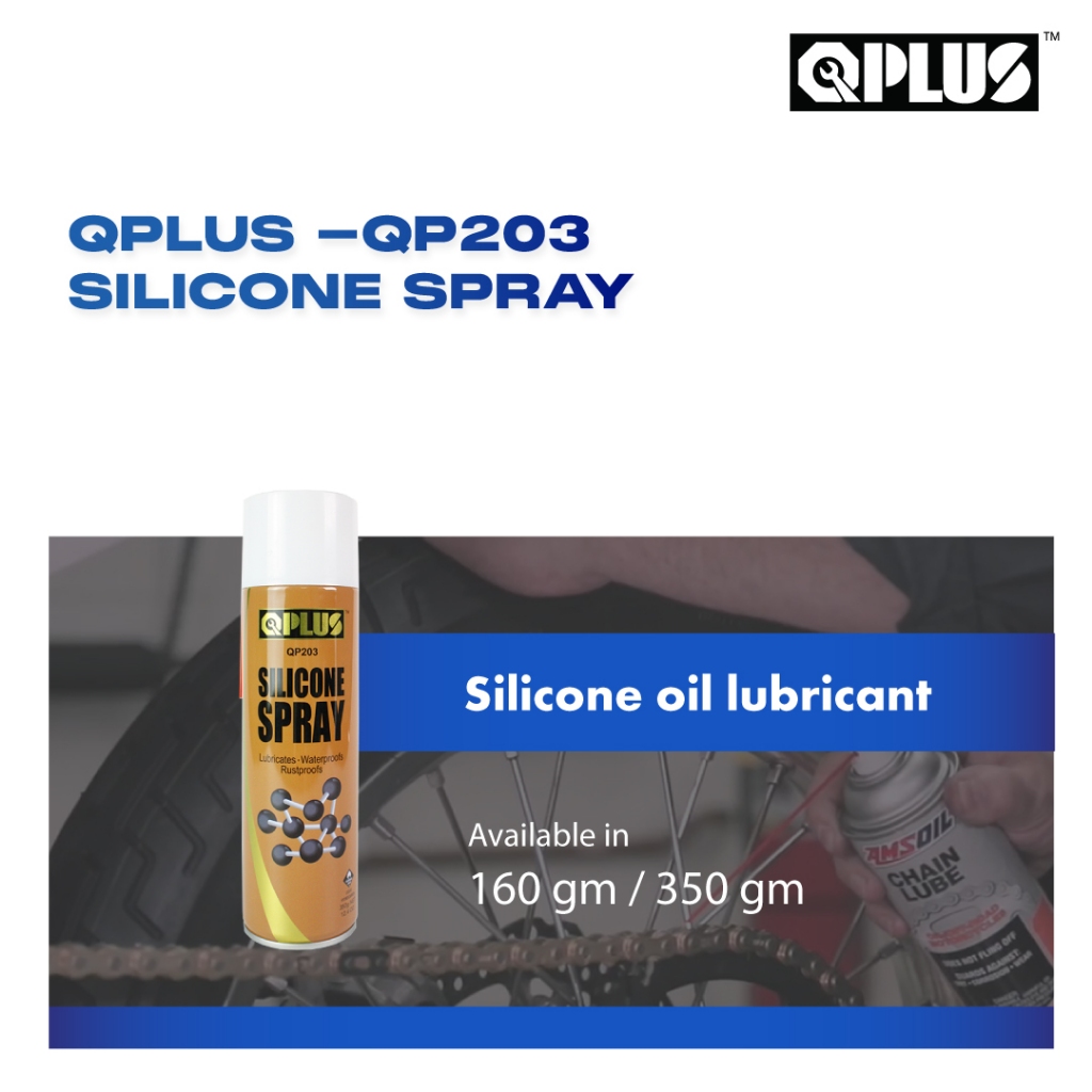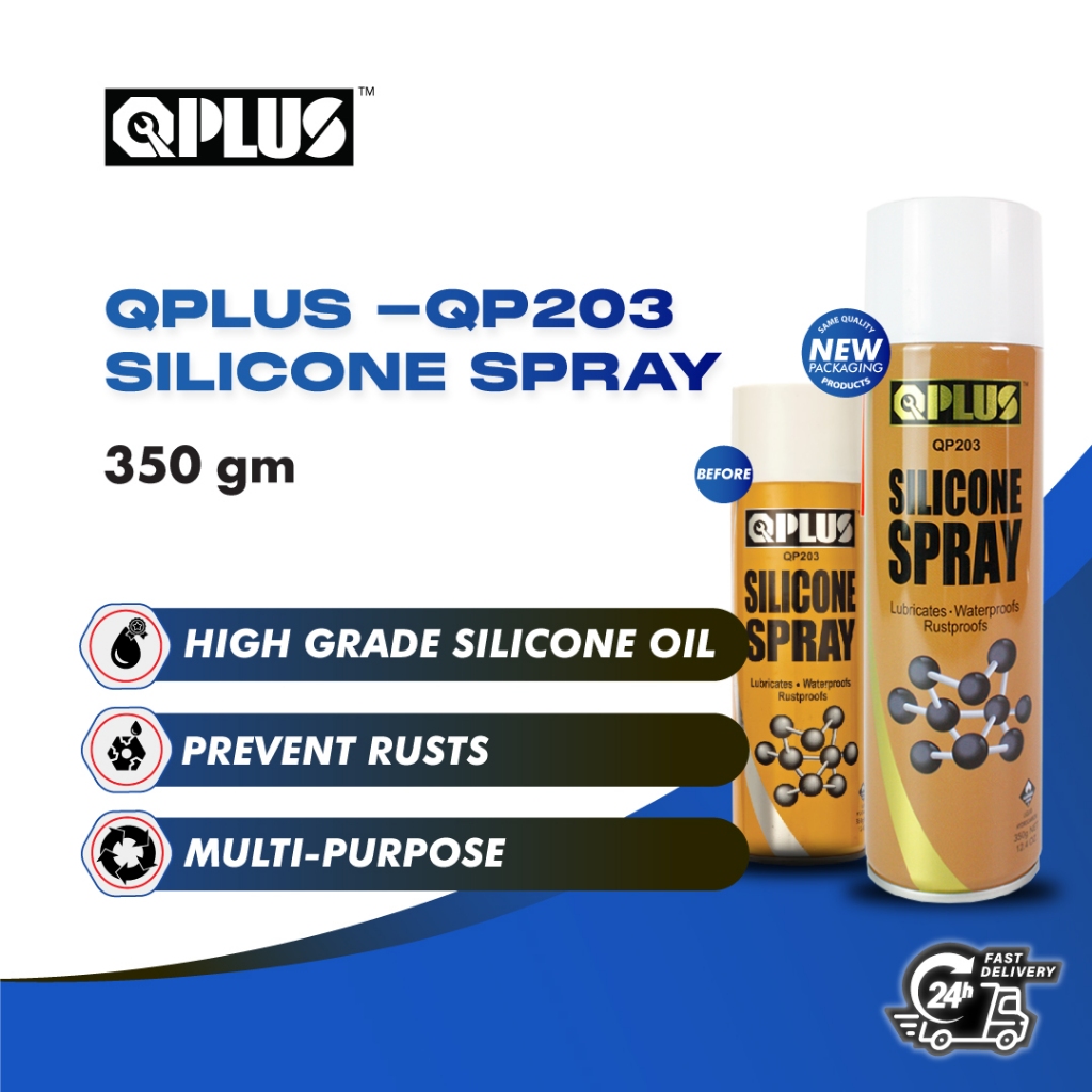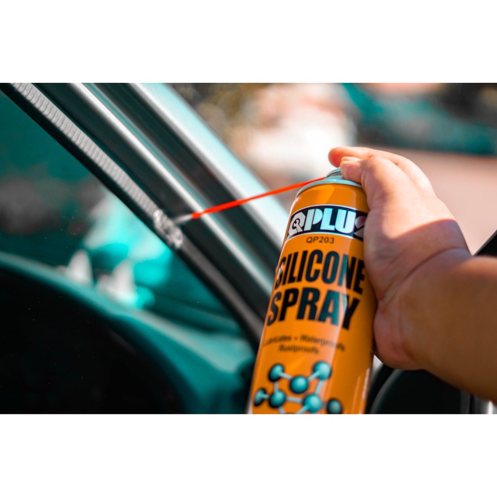 QPlus QP203 Silicone Spray (350g) | Multi-Purpose Dry Lubricant & Protectant for Metal, Plastic, & Rubber Surfaces