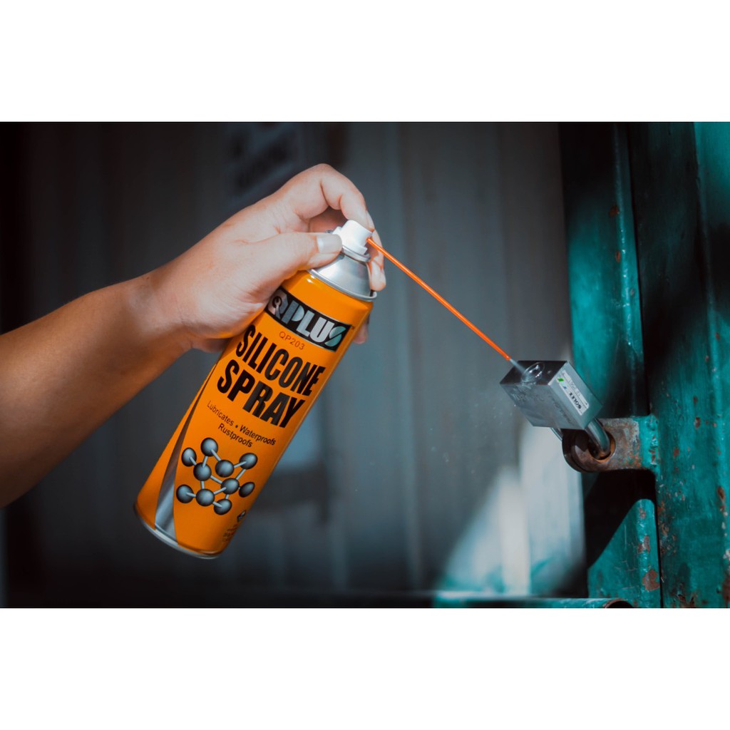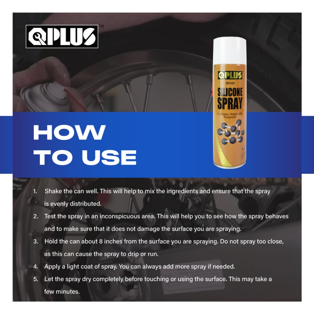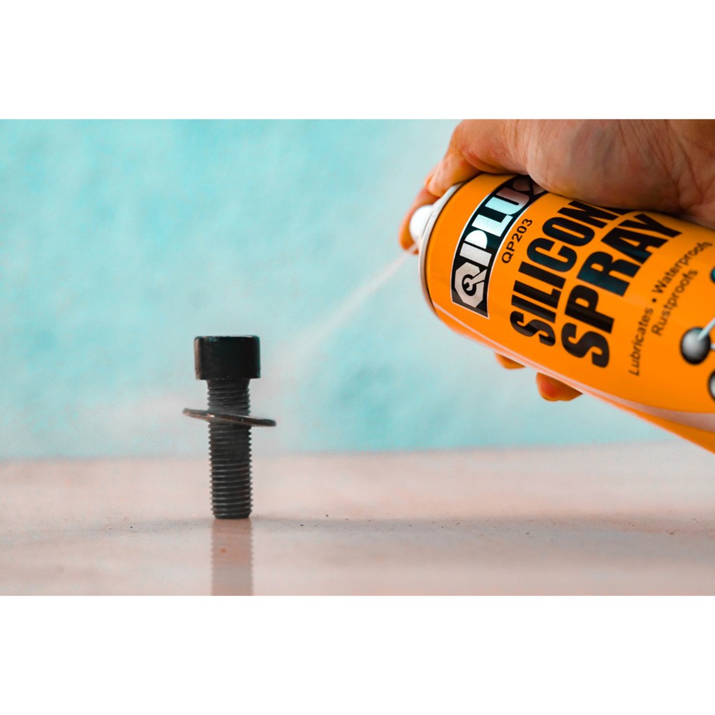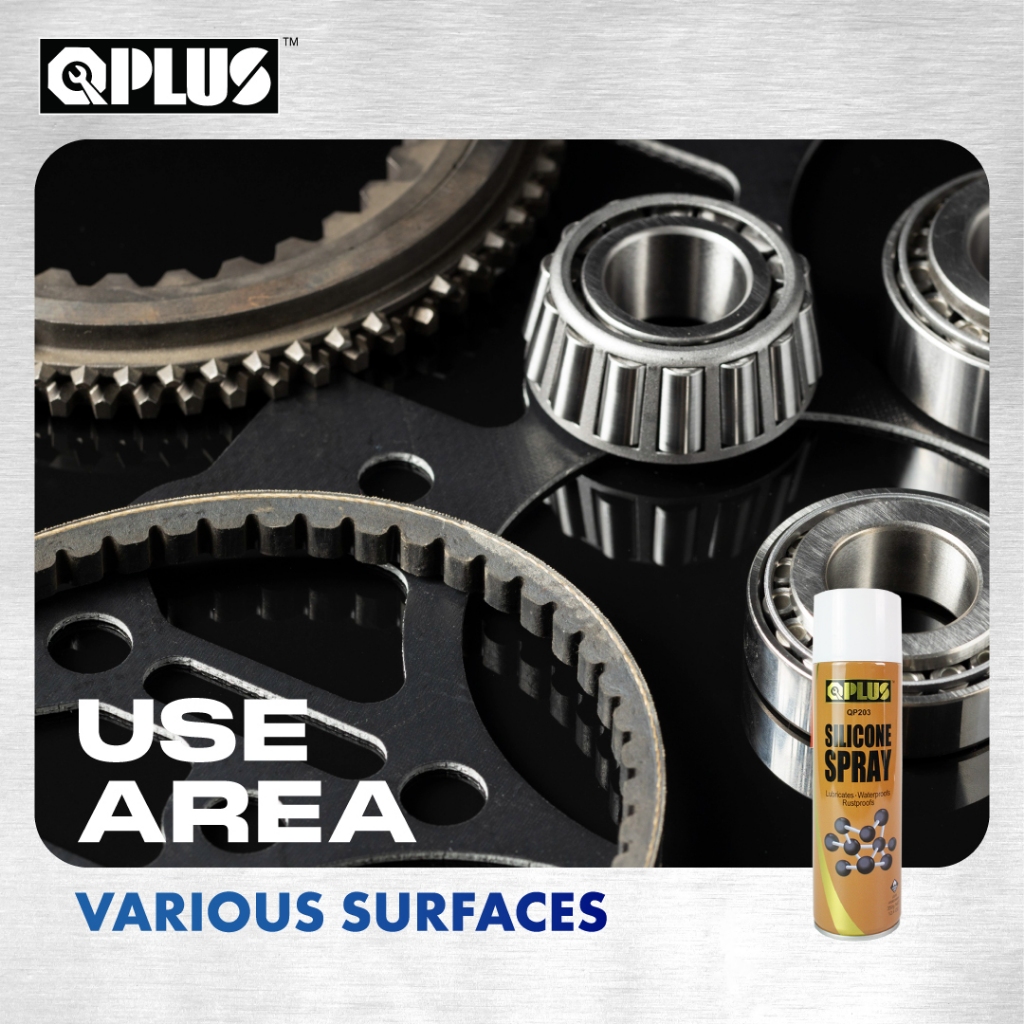 QPlus QP203 Silicone Spray (350g) | Multi-Purpose Dry Lubricant & Protectant for Metal, Plastic, & Rubber Surfaces