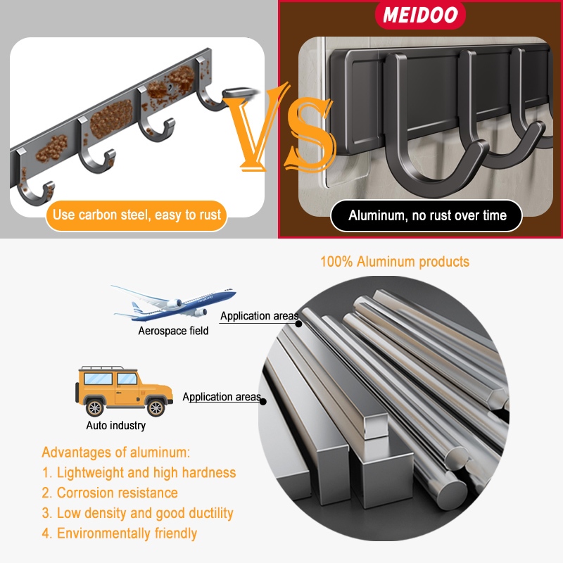 MEIDOO Bathroom Kitchen Hook Aluminum Black and Gray