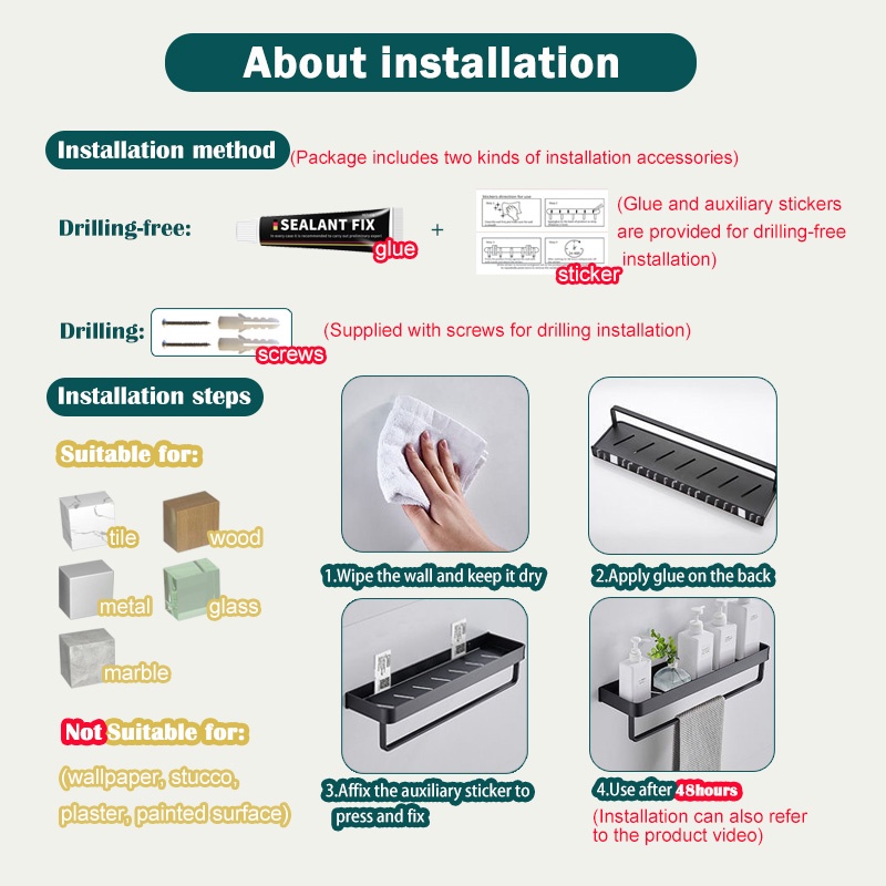 MEIDOO Waterproof Wall-Mounted Drilling-Free Bathroom Rack