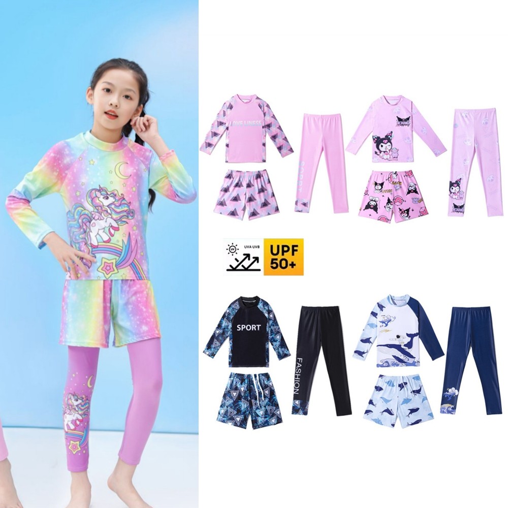 3Pcs/Set Swimsuit Kids Cartoon Astronaut Pony Kuromi Swimwear Children Swimming Suit