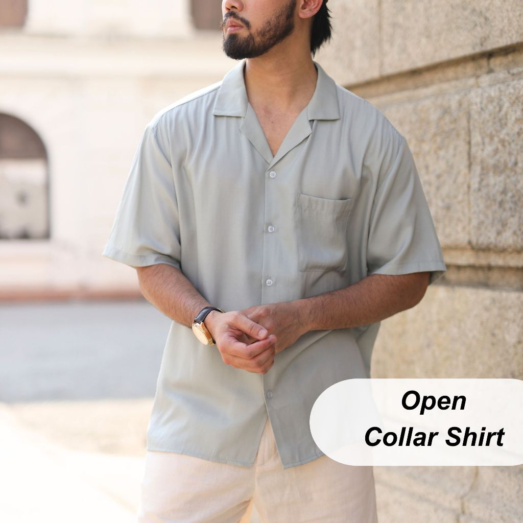 Kozy Open Collar Shirt Baggy Style | Kemeja Buka Kolar Kemeja Lelaki