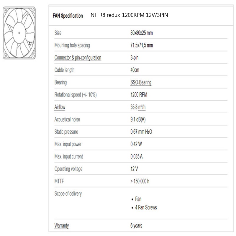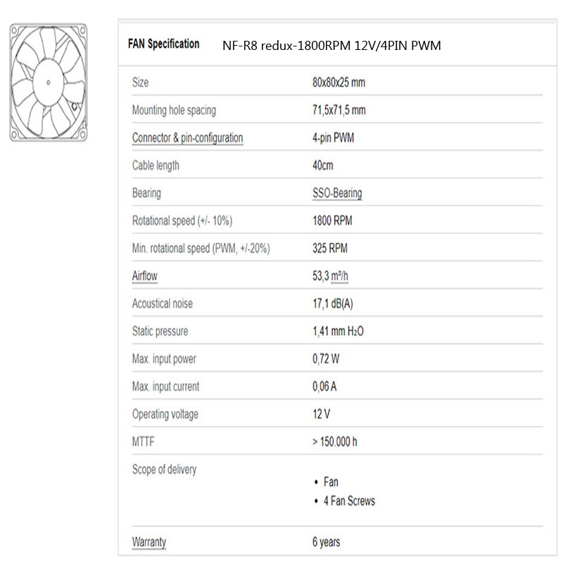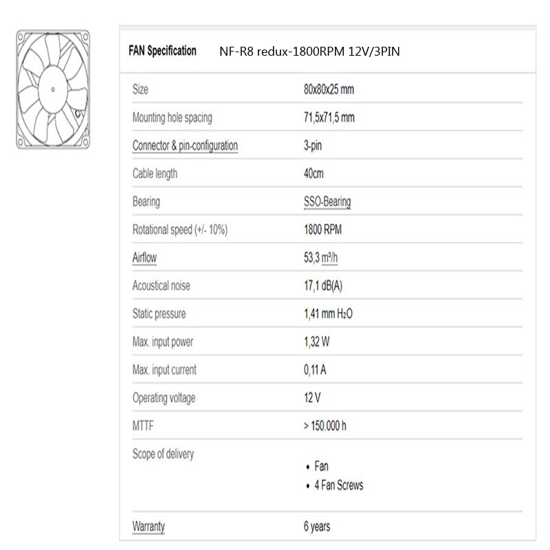 Noctua NF-R8 redux Compute Cooling Fan 12V 3Pin/4Pin 80mm PWM Quiet For Case Cooling CPU Cooler Radiator Replace Fan 80x80x25mm