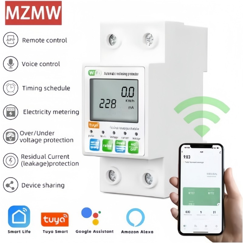 Wifi Automatic Transfer Switch 63a Smart Life Tuya Circuit Breaker Energy Meter Timer With Voltage Current And Leakage Protection PE