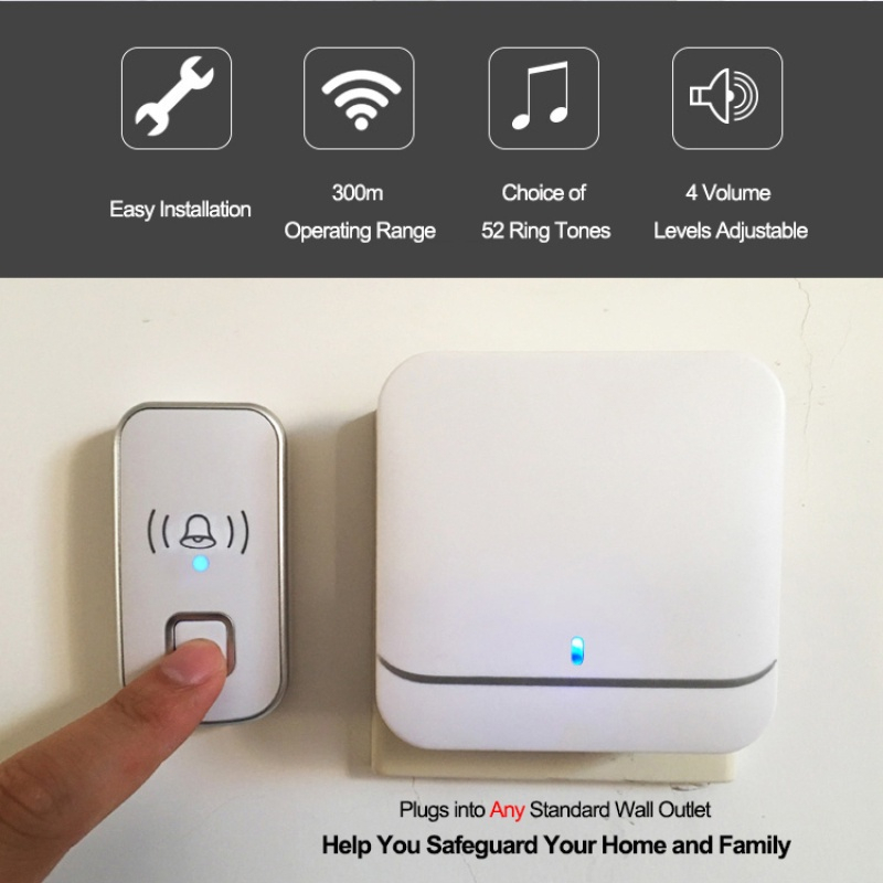 🍒CHERRY🍒 Waterproof Wireless Doorbell 300M Radius Security Alarm Smart Door Bell LED Light Receiving Prompt Doorbell