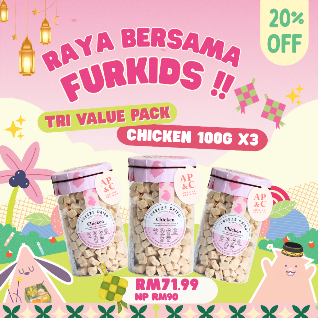 Amelisa Pet & Co. Freeze Dried Treats - Chicken Tri Value Pack (100g x3 ) Pet Treats/Cat Treats/Dog Treat