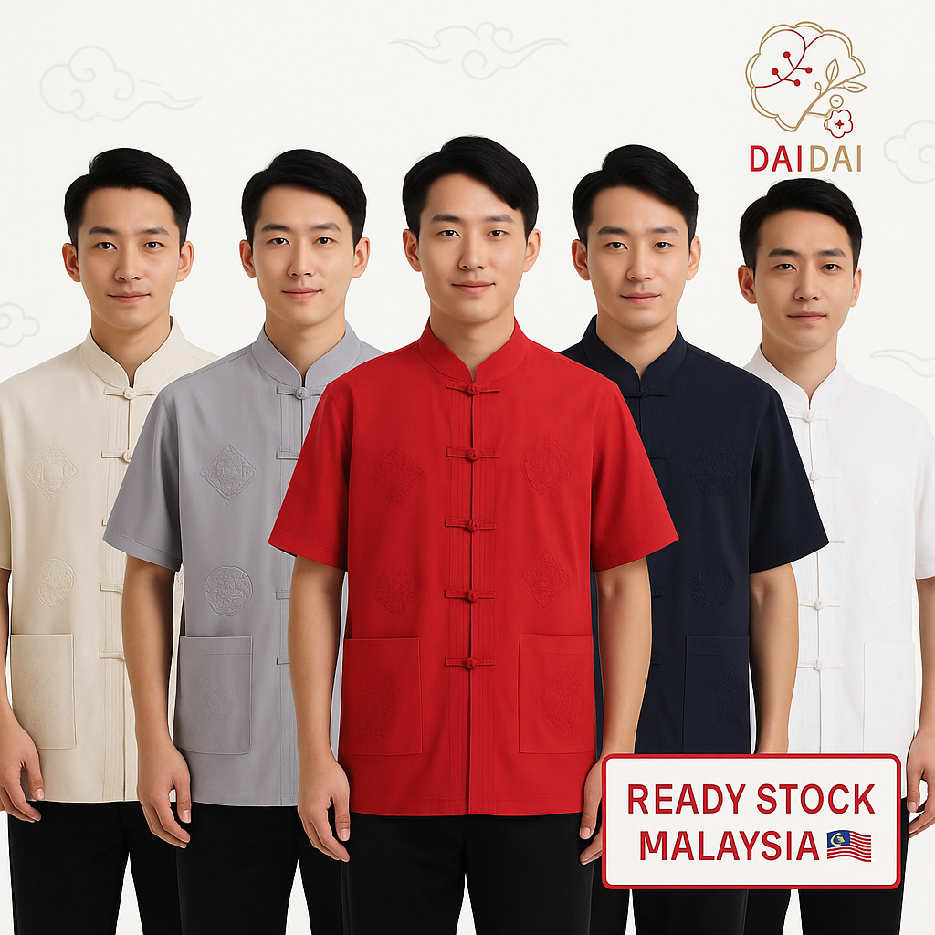 daidai (Ready Stock) 唐裝男短袖 Men Man Shirt Cheongsam Chinese New Year CNY Short Sleeve Tang Suit Baju Raya Lelaki 福字衣服短袖