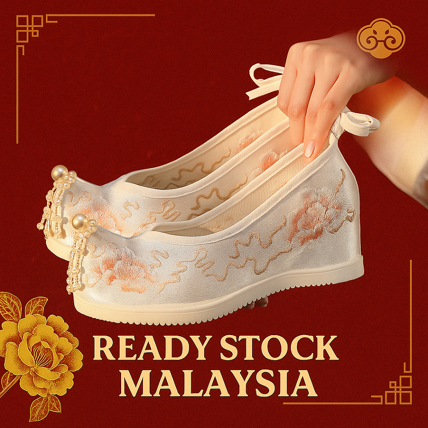daidai (Ready Stock) Women Hanfu Shoe Pearl Embroidery Chinese Hanfu Cheongsam Wedding Shoes 汉服鞋子女古风仙女高跟翘头中国风布鞋古装鞋春秋学生绣花