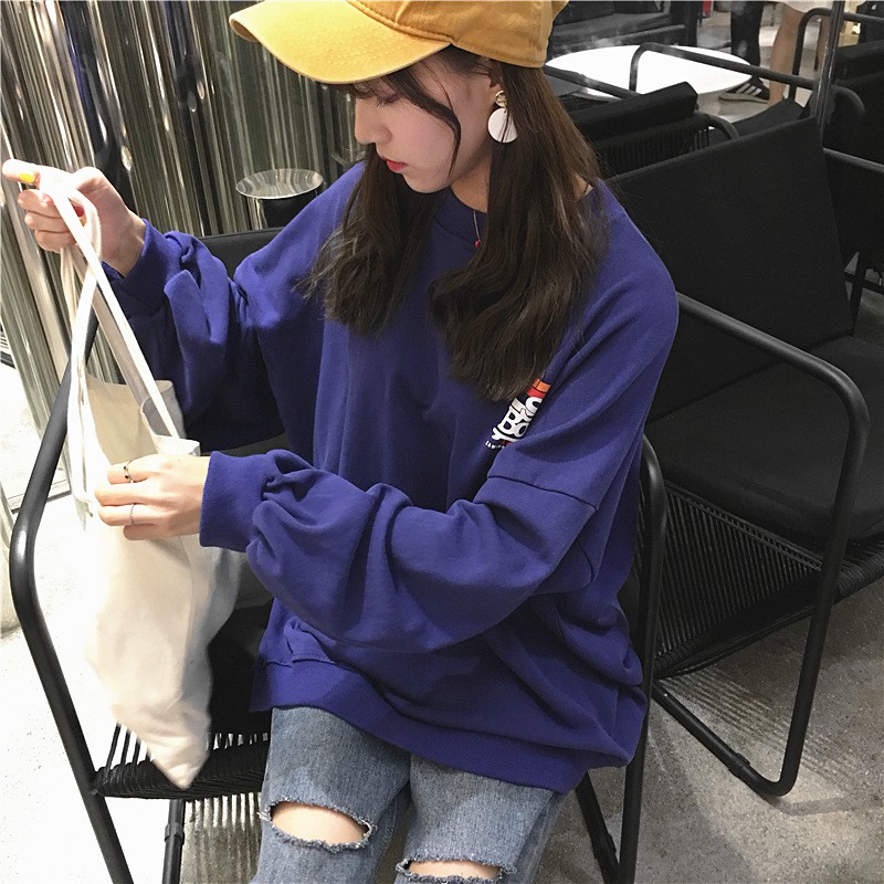 Dayoni Korean Women Street Style Graphic Casual Oversize Loose Long Sleeve Round Neck Sweater