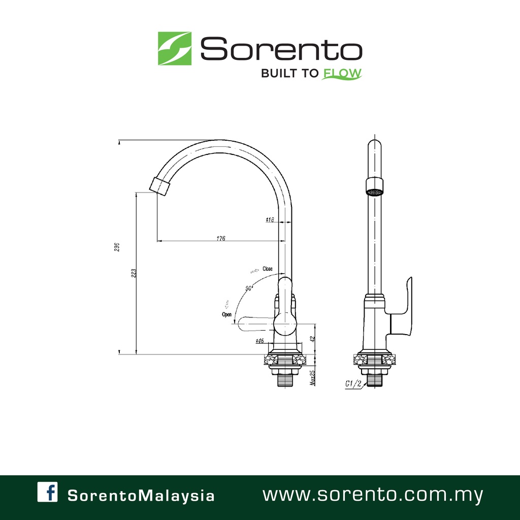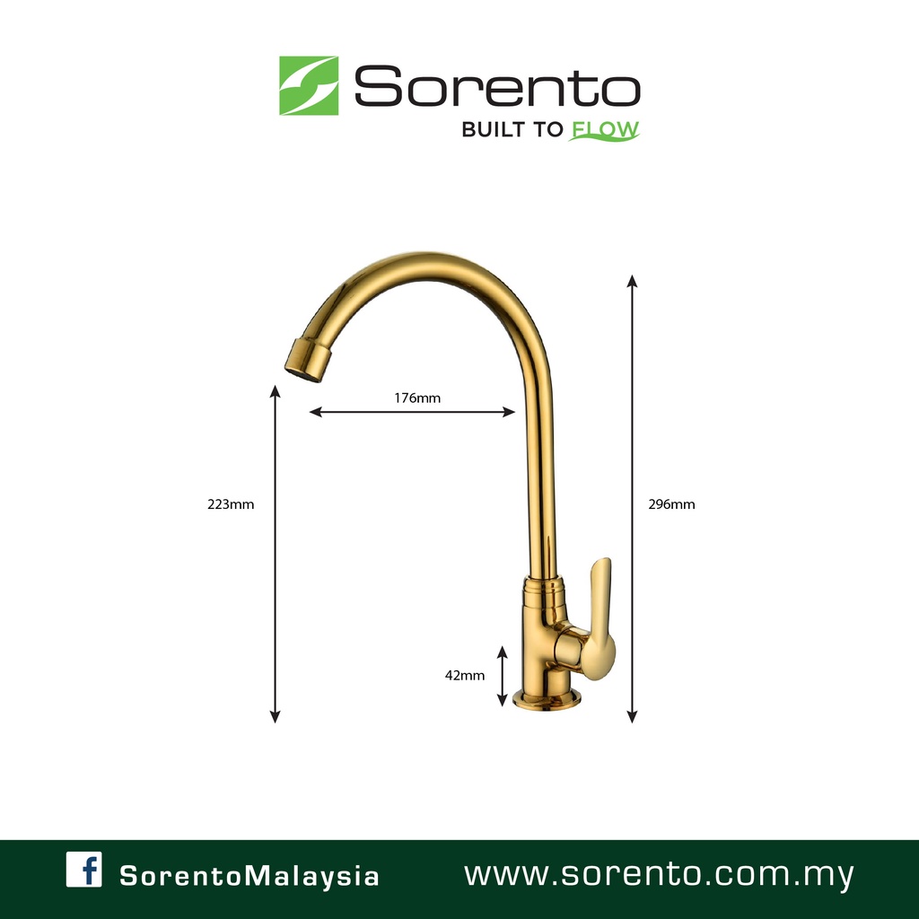 SORENTO SRTWT5848-GY Pilar Mounted Kitchen Sink Tap / HOT & COLD WATER TAP for kitchen / Gold Colour