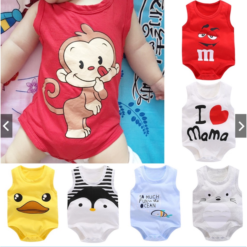 hot Baju Kartun Comel Baby Clothing Romper Baby Sleeveless Cotton Jumpsuits Newborn Infant Baby Boy Girl Kids Clothes