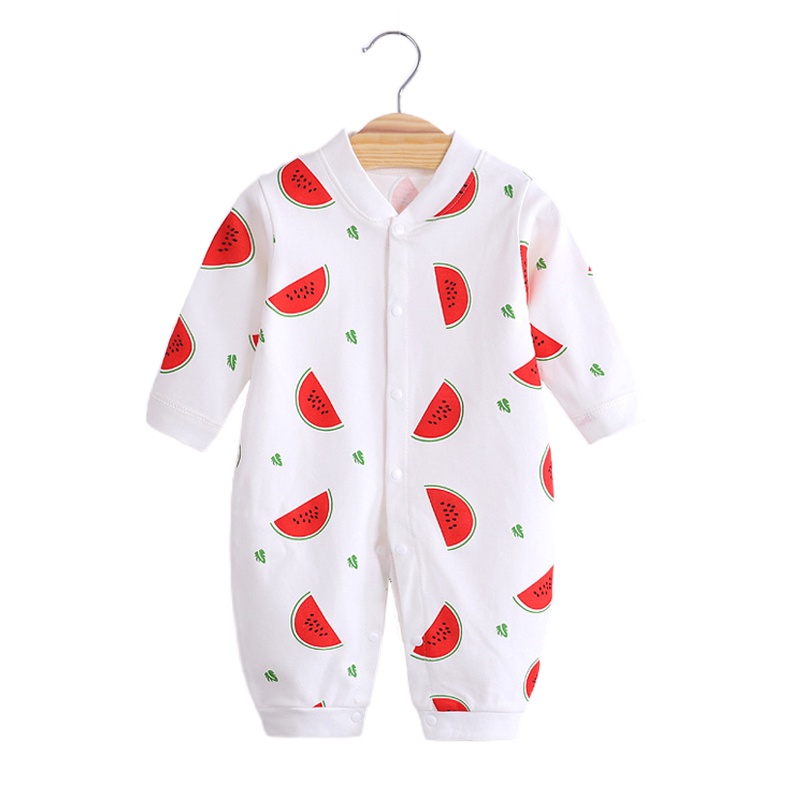 Newborn Baby Boy Girl Long Sleeve Button Romper Cartoon Fruits Jumpsuit Outfits Clothes 0-12 Month