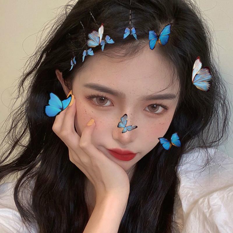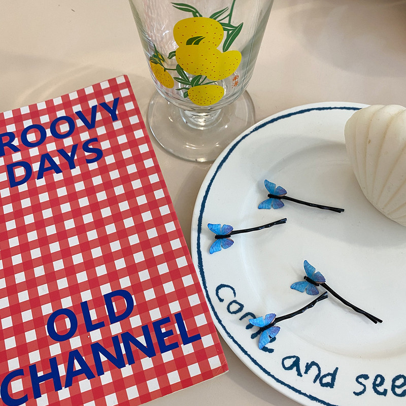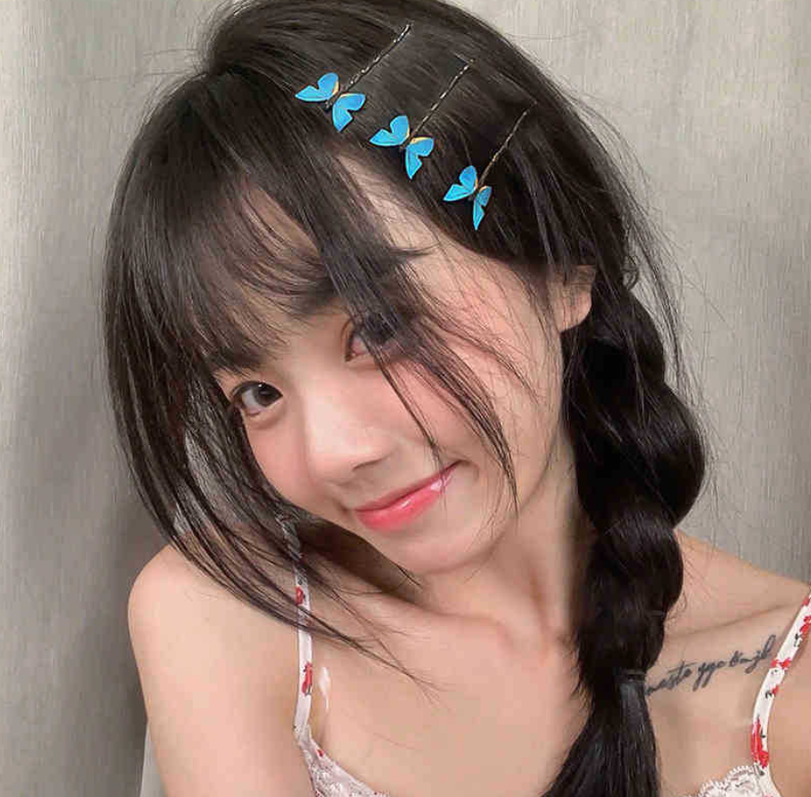 Korean Cute Ins Wind Sweet Side Clip Blue Butterfly Girl Bangs Hairpin Hair Accessories