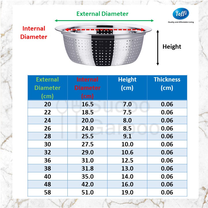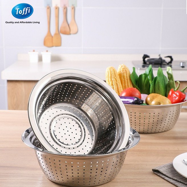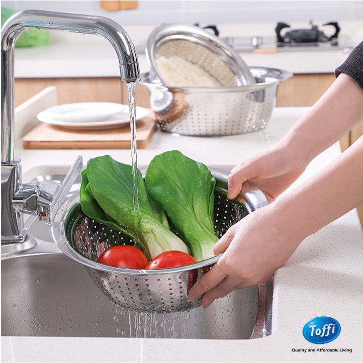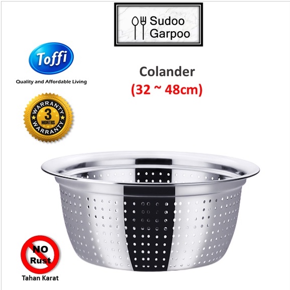 TOFFI~ Colander Stainless Steel/ Penapis Mangkuk/ Bakul Strainer (32/36/38/40/48cm)