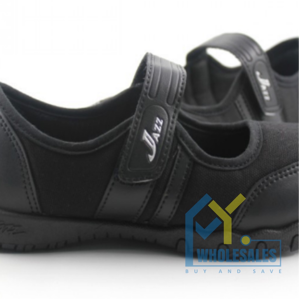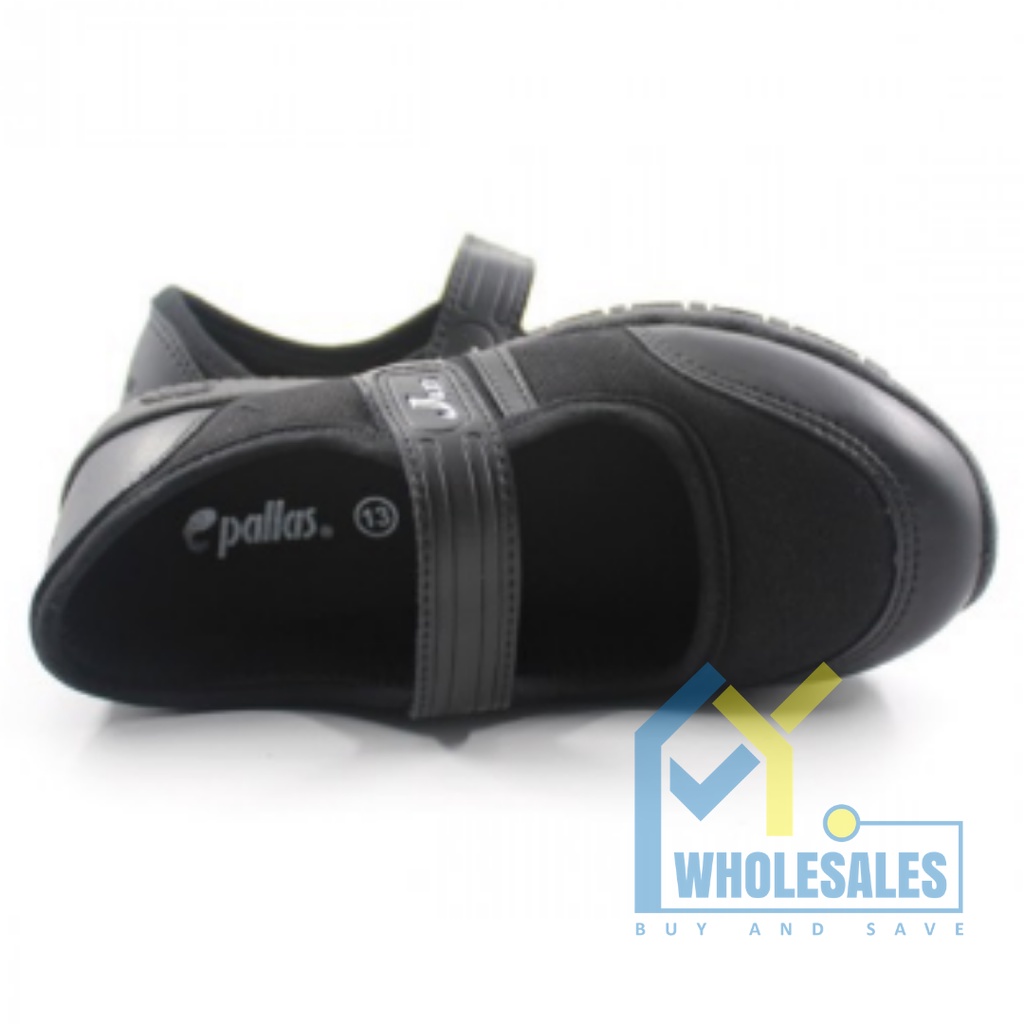 204-034BK / 306-034BK - KASUT SEKOLAH JENAMA PALLAS JAZZ KASUT HITAM1 LEKAT ( SCHOOL SHOE SINGLE VELCRO STRAP BLACK )