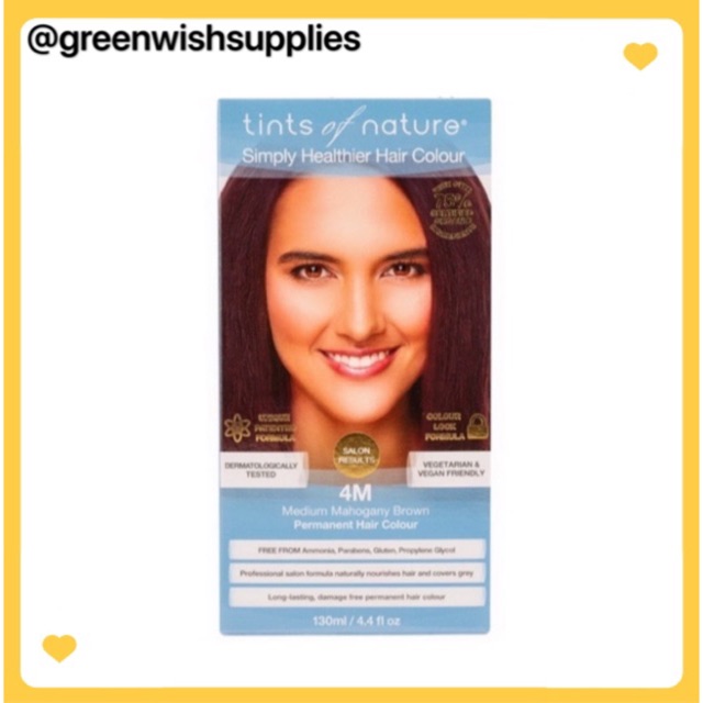 TINTS OF NATURE - Organic 4N Medium Mahogany Brown Permanent Hair Colour (130ml) [Country Origin:UK]