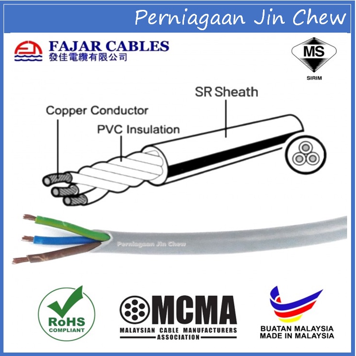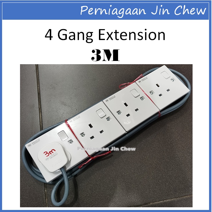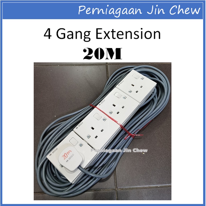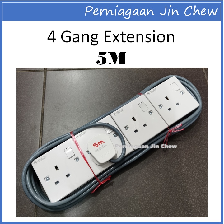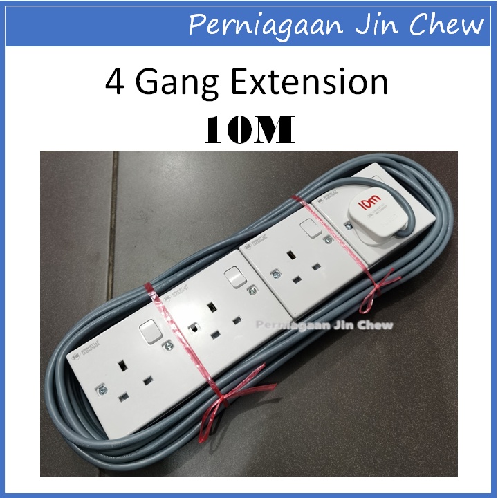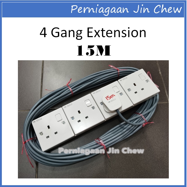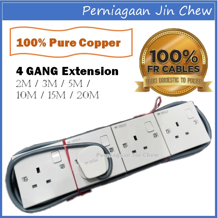 4 GANG Extension Socket FAJAR CABLE (1.0mm) 2m / 3m / 5m / 10m / 15m / 20m