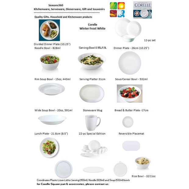 (Ready Stock) Corelle Classic Winter Frost White 12-pc collection set