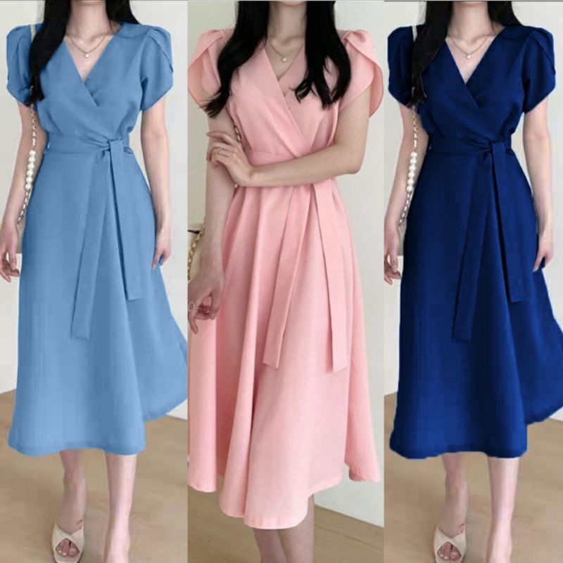RIBBON DRESS/ PLAIN DRESS FOR WOMEN davia - 5 BEAUTIFUL MIDI DRESS