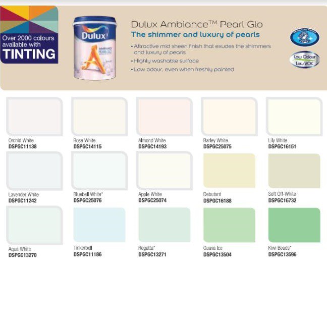 18L Dulux Pearl Glo -SHEEN (Interior Paint) - Color Option (Any Color, PM Code)