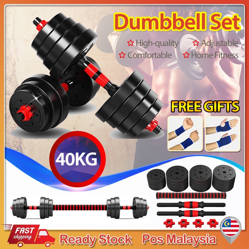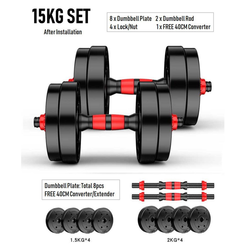 【Ship from MY】Dumbbell Convertible & Adjustable Set Gym Cast Iron Strength Fit (30KG) + 40cm Connector