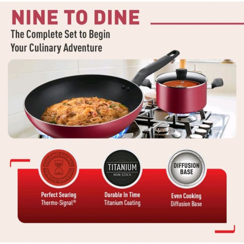 【READY STOCK】Tefal Supercook 9pcs set (Frypan 24cm, Wokpan 28cm, Stewpot 22cm & 24cm, etc)