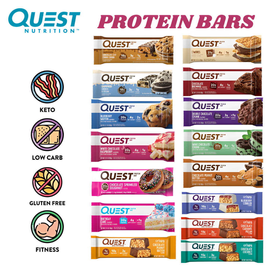 NEW STOCK Quest nutrition Protein Bars 60g 16type High Protein, Low Carb, Gluten Free, Keto Friendly USA