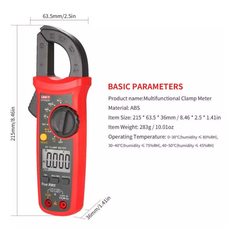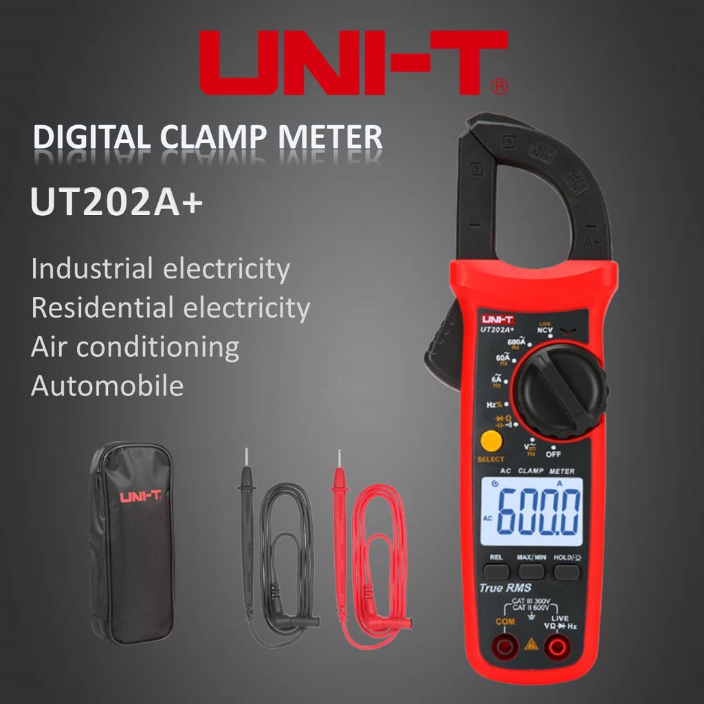 UNI-T UT202A+ Digital Clamp Meter 600A with True RMS Measurement & Live/Neutral wire detection Multimeter