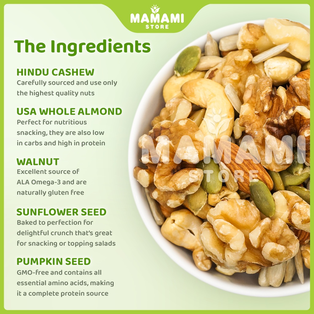 [Mamami Minuts] Mix Nuts 250g Cashew Nut Almond Walnut Pumpkin Seed Sunflower Seed Kacang Campur Kekacang Campuran 堅果混合
