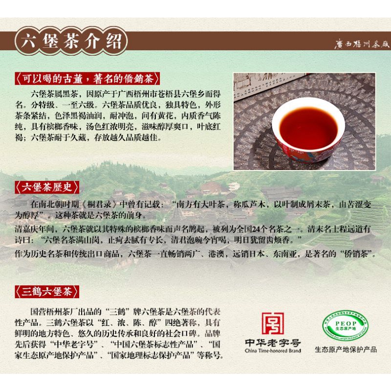 Liu Pao Tea (Mi Zhuan) Dark Tea Three Crane Brand 2016年 三鹤牌六堡茶米砖 (2013年起始陈化)