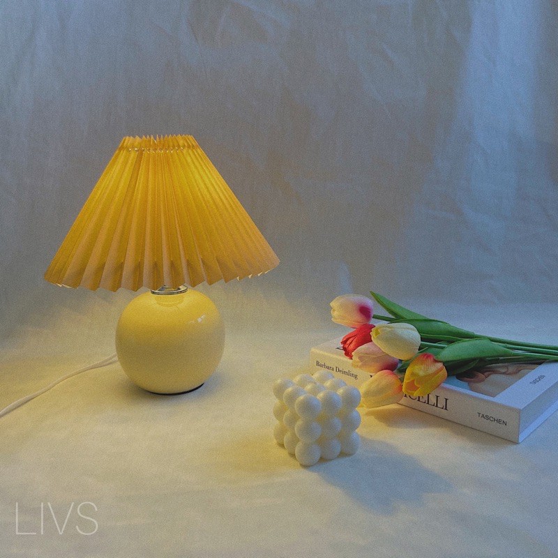 [LIVS]Ready Stocks Korean Vintage Classic Retro Ceramic Pleated Bedside Desk Table Lamp /Lampu Hiasan