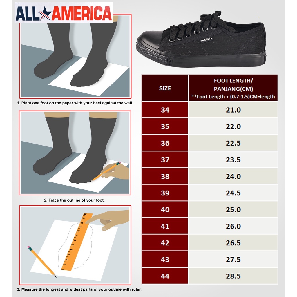 ALL AMERICA Secondary Student Black School Shoes Canvas | All American Kasut Sekolah Hitam Menengah Bertali Canvas 3337