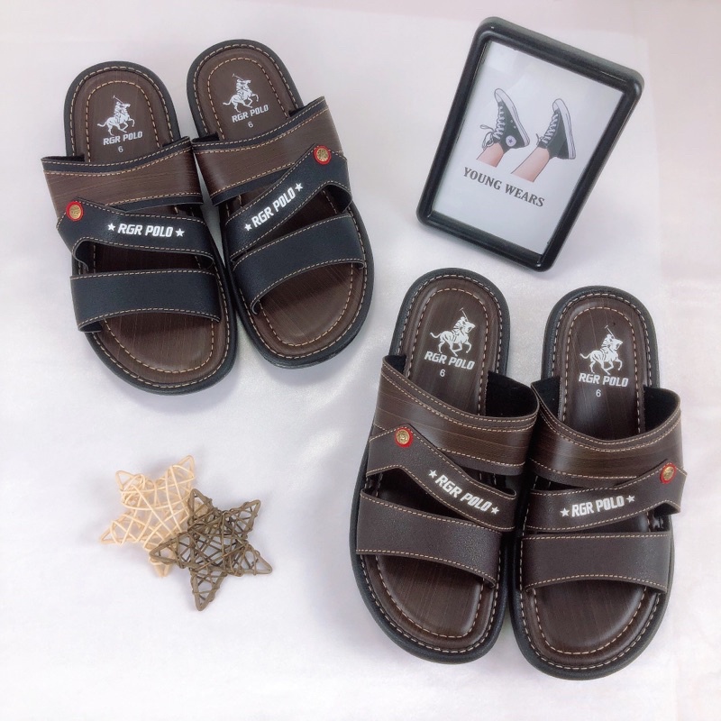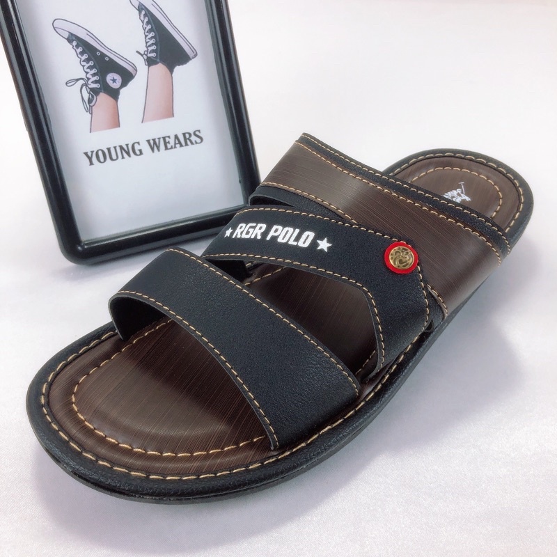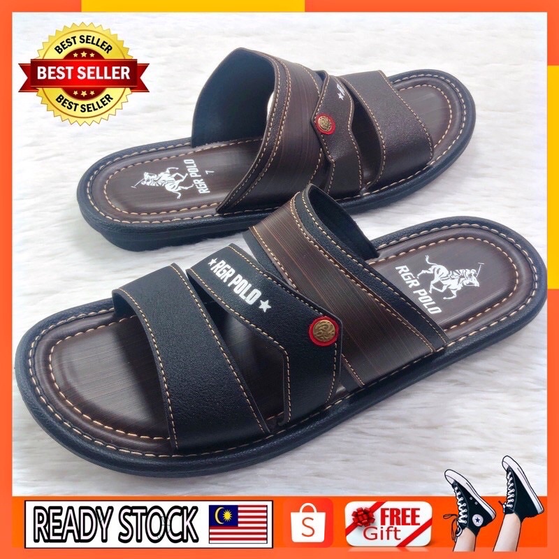 【Young.Wears】Men’s RGR POLO Leather Trending Sandal Slipper / Selipar Lelaki Dewasa