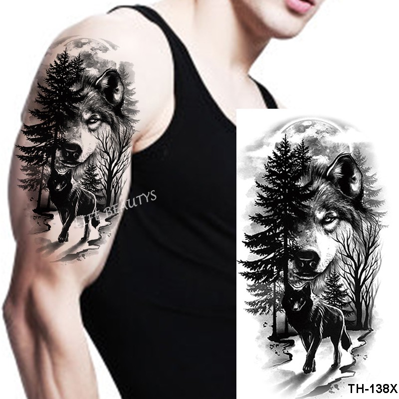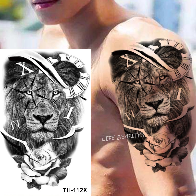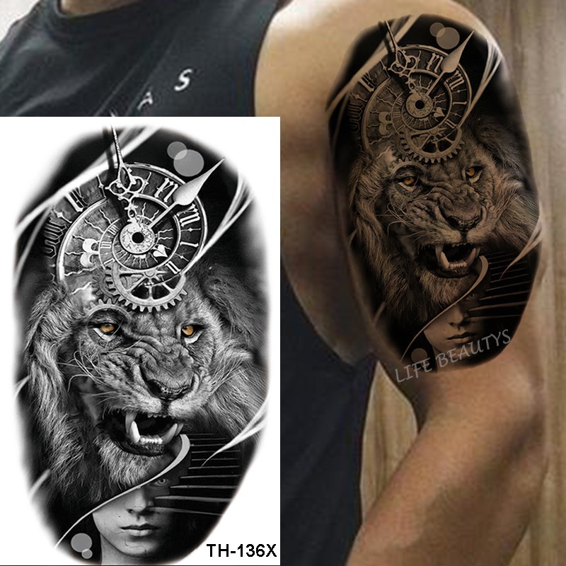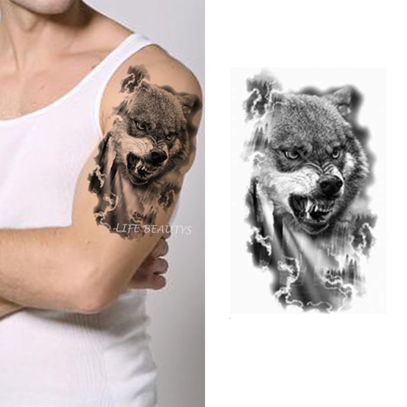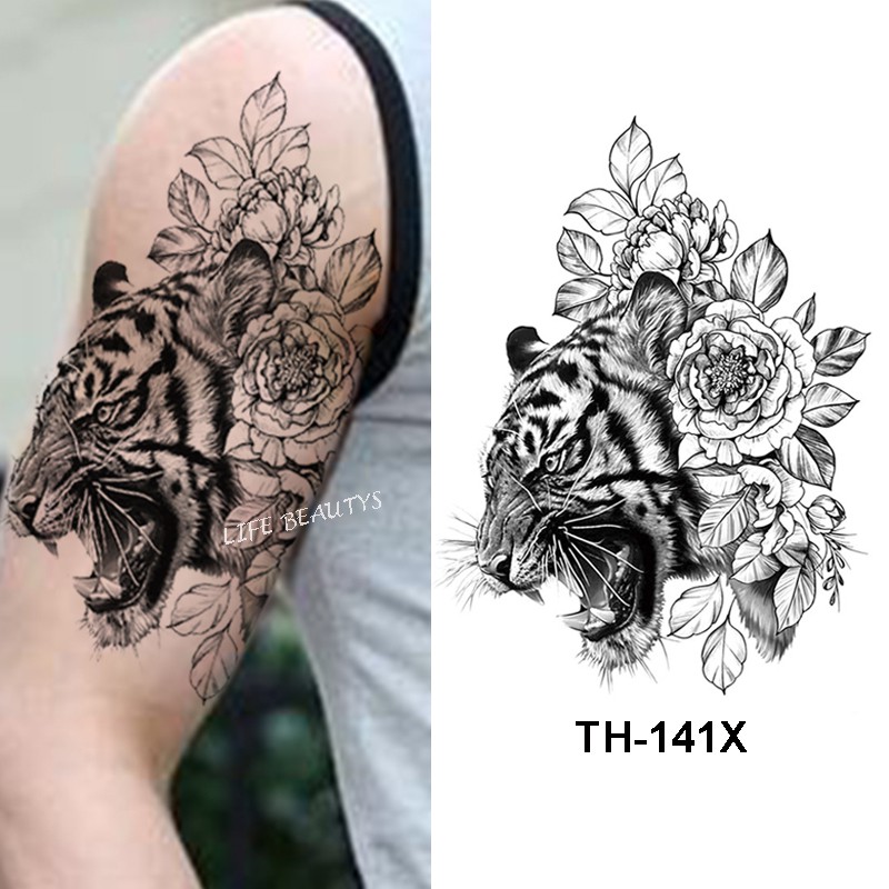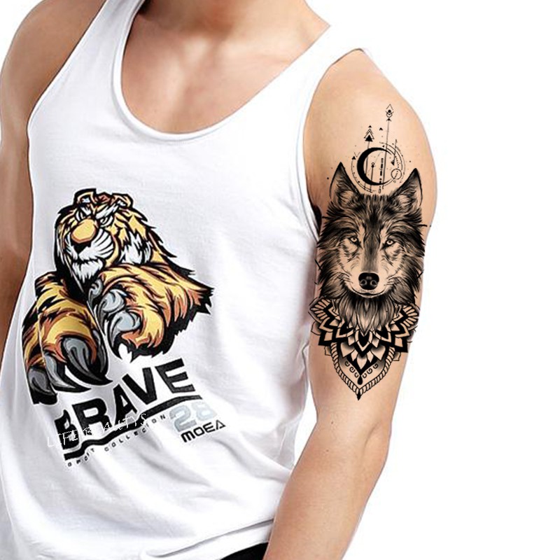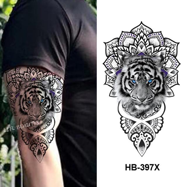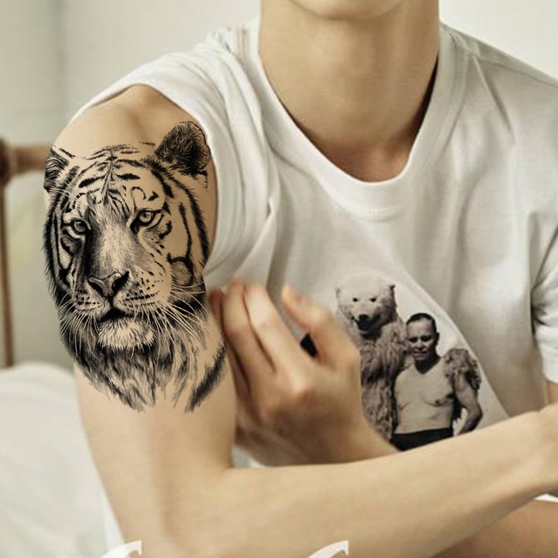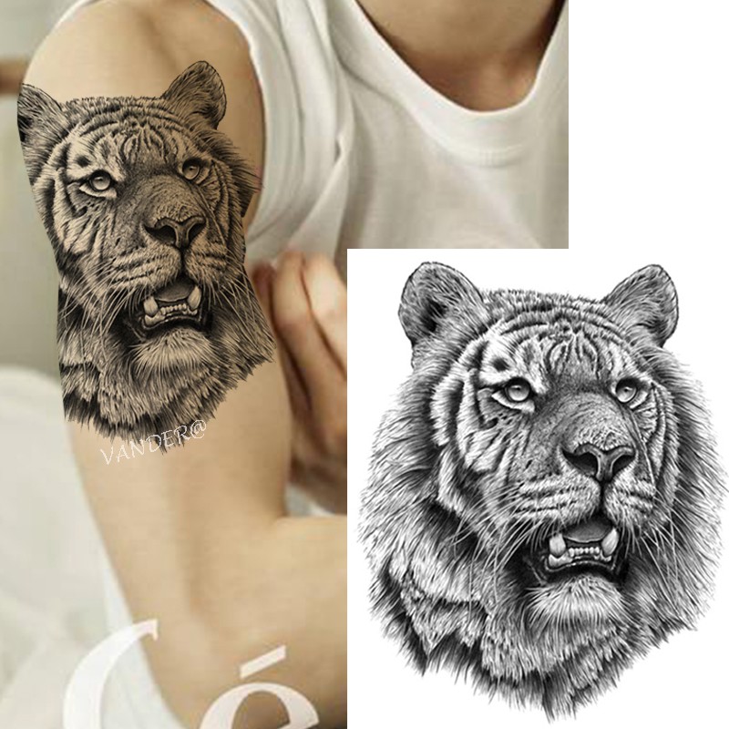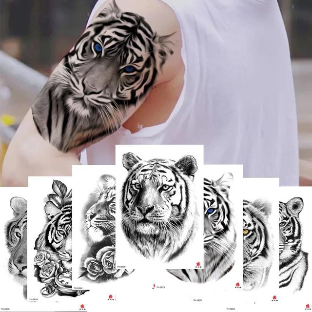 Lion Tiger Cool Temporary Tattoo Sticker Fashion Wolf Waterproof Animal Body Art Arm Fake Removable Tatoo Men Women Personality