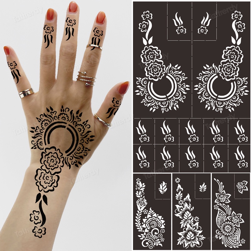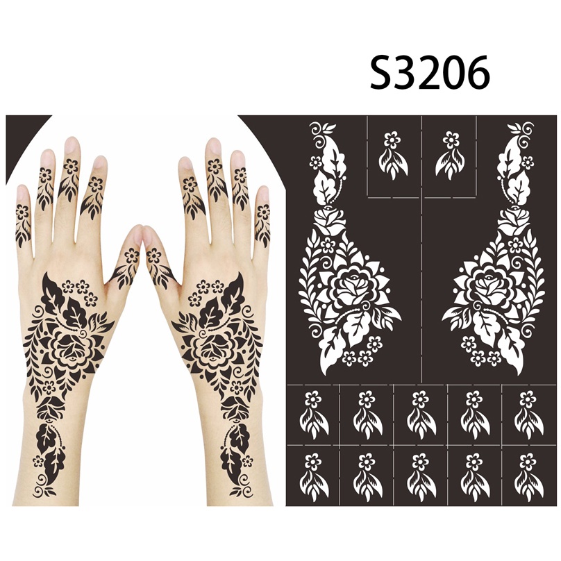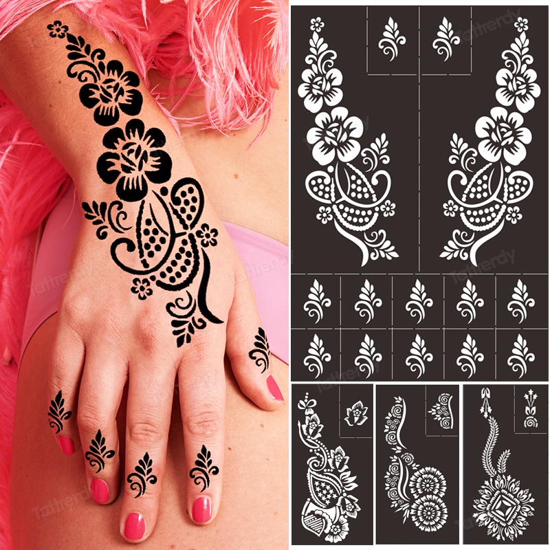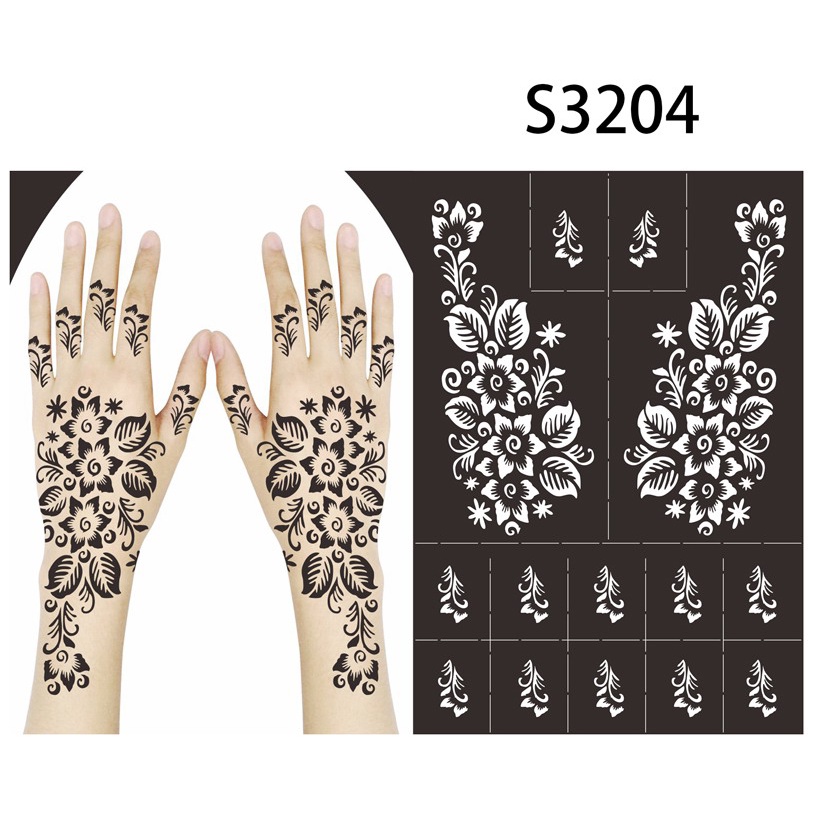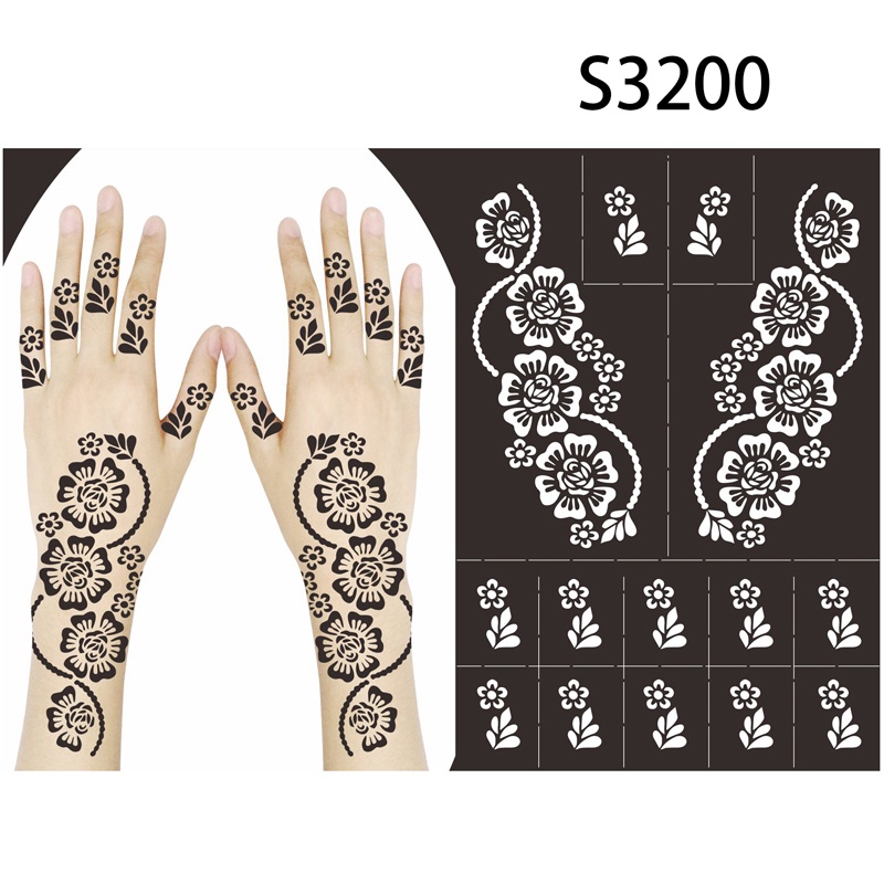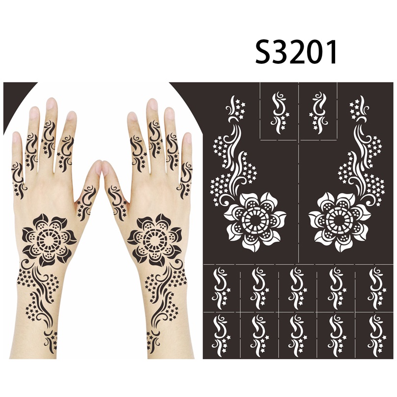 Reusable Temporary Henna Tattoo Stencil Hand Arm Sleeve Face Tattoo Supplies Stencils for Airbrush Painting Template DIY Indian