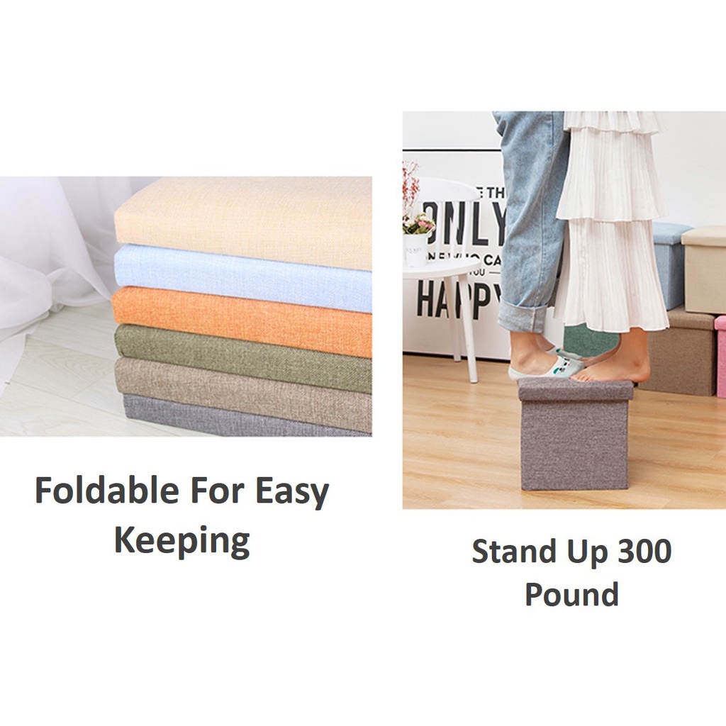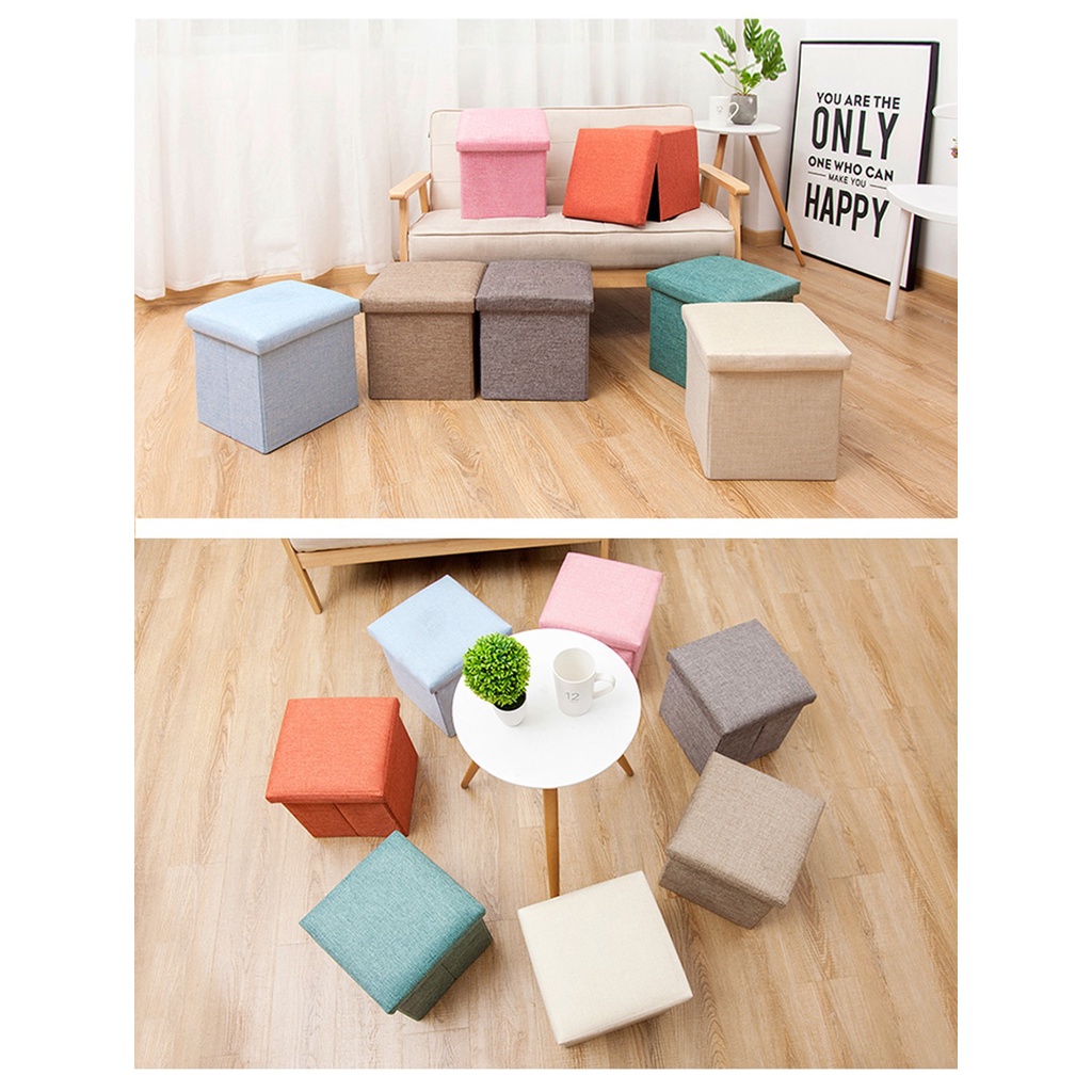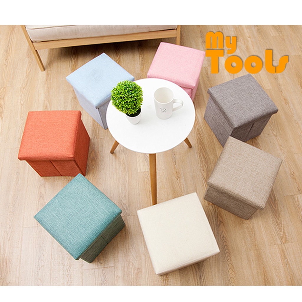 Foldable Storage Ottoman (30 x 30 x 30) Fabric Foot Stool Chair Seat Footrest Folding Storage Box Penyimpanan Fabrik